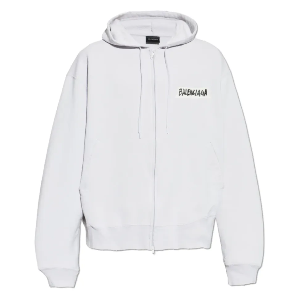 Balenciaga Over Zip-Up Hættetrøje er en sweatshirt med lynlås, der kombinerer en let oversized silhuet med et håndskrevet signaturlogo på bryst og ryg, designet til urban og hverdagsbrug. Nøgleattributter: Grå | Bomuld | Komfortabelt stof | Holdbar konstruktion | Central lynlås | Rummelig hætte | Lommer foran | Tovejslynlås | Let oversized silhuet | Håndskrevet signaturlogo på bryst og ryg | Simpelt snit | Mål og pasform: Modelhøjde: 185 cm | Modelbryst: 92 cm | Model talje: 74 cm | Model hofter: 91 cm | Modellen er iført størrelse: L | Let oversized pasform | Løs silhuet for afslappet brug | Sammensætning og pleje: 100% bomuld