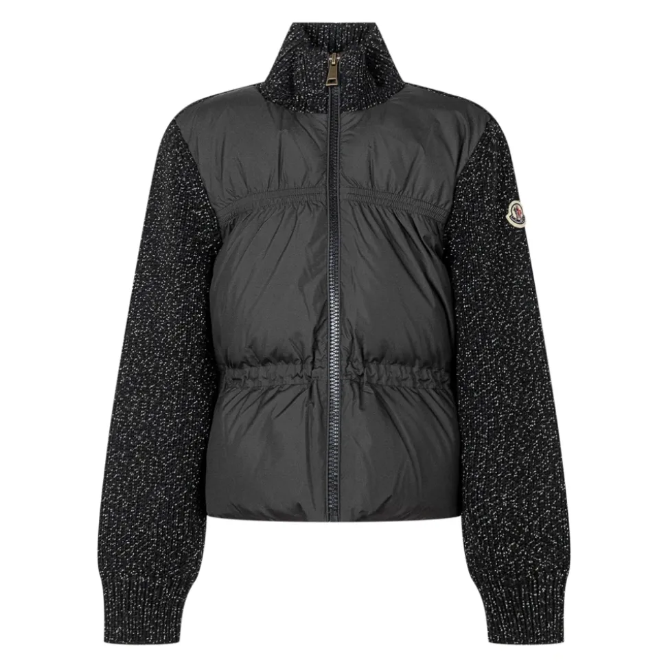 Moncler Padded Metallic Wool Zip-Up Cardigan kombinerer en dunforet, isoleret front med en skinnende merinostrik for varme og en legende metallisk finish. Lynlåslukningen og rullekraven gør den nem at have på i lag i koldt vejr. Vigtige egenskaber: Sort | Merinould | Dunforet front for isolering | Varm strikkonstruktion | Lynlåslukning | Polyesterfor | Rullekrave | Glatstrik | Metallisk trådfinish | Gauge 3 | Sammensætning og pleje: Ydre front: 100% Polyester | Basiskvalitet: 98% Uld, 1% Metalliseret fiber, 1% Polyamid | For: 100% Polyester | Fyld: 90% Dun, 10% Fjer | Håndvask; Må ikke bleges; Må ikke tørretumbles; Stryg max 110°C uden d Må ikke renses; Må ikke professionelt vådrenses; Tørres fladt i skyggen.