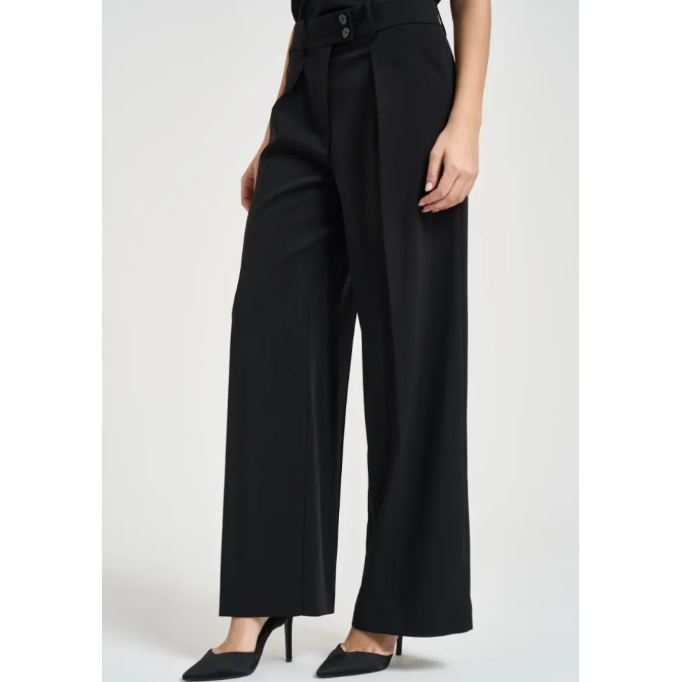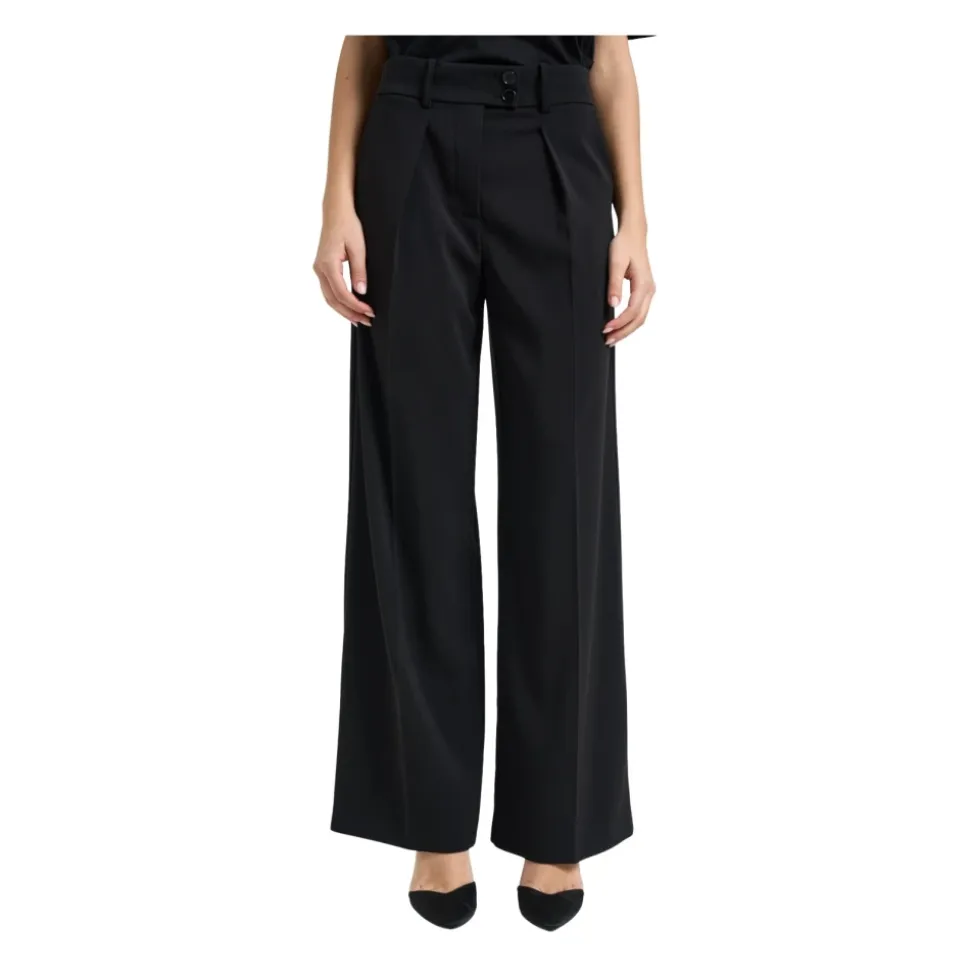 Patrizia Pepe Palazzo Bukser – højtaljede bukser med brede ben og en flydende silhuet samt frontlæg, der fremhæver figuren. Ideelle til et raffineret look både dag og aften. Vigtige egenskaber: Sort | Polyester | Lynlås foran og dobbelt knaplukning | Bæltestropper | Paspolerede baglommer | Høj talje | Bredt palazzo-ben | Frontlæg, der former silhuetten | Glat overflade og blødt fald | Essentielt, elegant design | Mål & pasform: Modelhøjde: 176 cm; iført størrelse 40 | Høj talje | Palazzo / bred pasform | Flydende fald | Sammensætning & pleje: 100% Polyester