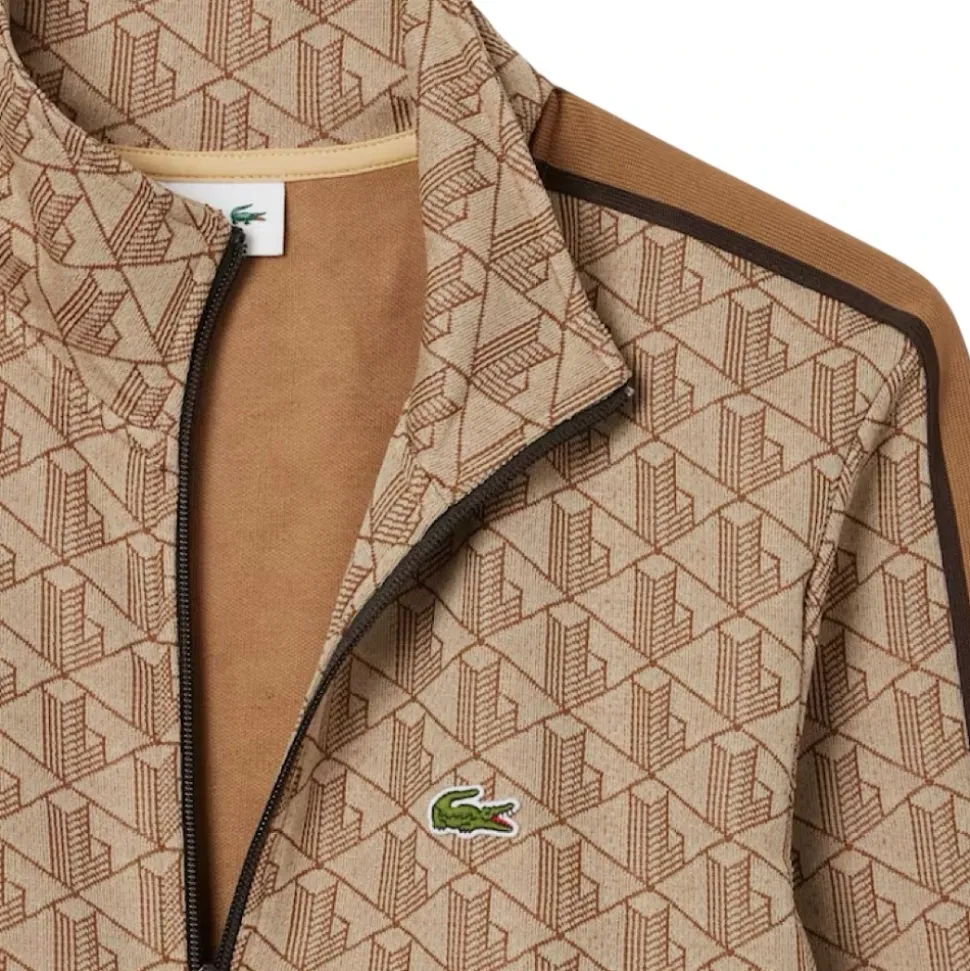 Lacoste Paris Zip-Up Jacquard Track Jacket kombinerer en monogram jacquardstrik med en lynlås silhuet for sporty hverdagsbrug. Den skiller sig ud med sin teksturerede strik og markante kontraststriber på ærmerne. Nøgleegenskaber: Beige | Bomuld og polyester | Slidstærk jacquardstrik | Fuld lynlås foran | To paspolerede sidelommer | Monogram jacquardmønster | Kontraststriber på ærmerne | Broderet krokodille på brystet | Stand-up krave | Ribstrikkede manchetter og søm | Mål og pasform: Almindelig pasform, let figursyet | Lille i størrelsen – overvej at gå en størrelse op | Sammensætning og pleje: Hovedstof: 58% polyester, 38% bomuld, 4% polyamid | Lomme foring: 100% bomuld | Ribkant: 98% bomuld, 2% elastan | Maskinvask skånsom 30°C. Må ikke bleges. Må ikke tørretumbles. Stryg ved max 110°C. Må ikke renses. Hængetørres.