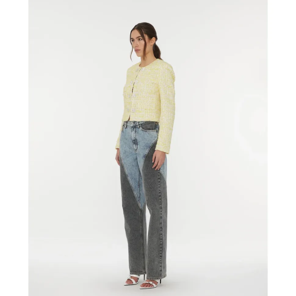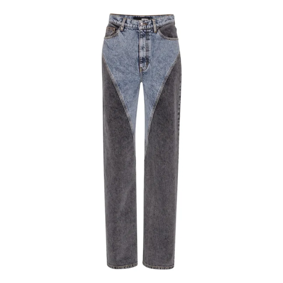 Omfavne ubesværet stil med vores højtaljede straight-leg jeans fra ROTATE Birger Christensen. Fremstillet med omhyggelig opmærksomhed på detaljer, disse jeans tilbyder både komfort og en chic æstetik. Med en højtaljet silhuet, straight-leg design, fem lommer med hårde nitter og et unikt patchwork af blå og mørkegrå denim. Lavet af 100% bomuld, disse jeans er et must-have for den modebevidste kvinde. Komplet med original denimtrådfarve, logo jacron på logoet og en logo knap for et karakteristisk touch.