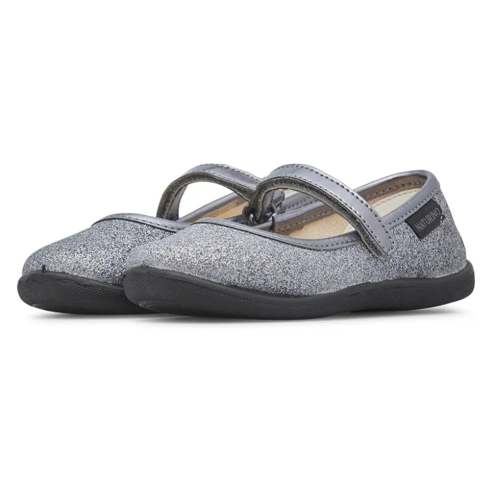 Naturino Pavia Ballerina kombinerer en glitteroverdel med en sikker vristrem for en glitrende, stabil sko, der er velegnet til både hverdagsbrug og festlige lejligheder. Vigtigste egenskaber: Grå | Sølv | Glitterstof | Skridsikker sål | Justerbar vristrem | Skridsikker gummiydersål | Rund tå | Glitterstofoverdel | Læderkant på toplinje og rem | Sammensætning & pleje: Overdel: Glitterstof og læderkant | Foring: Tekstil | Indersål: Læder | Ydersål: Gummi