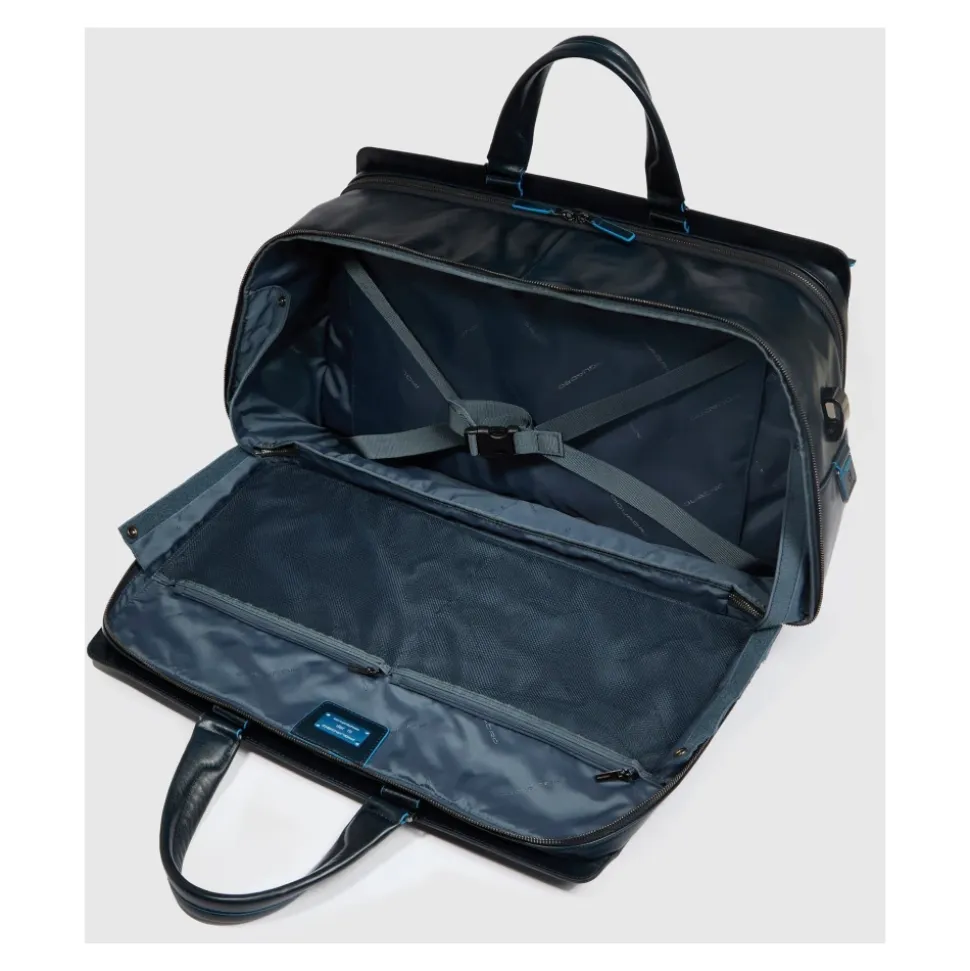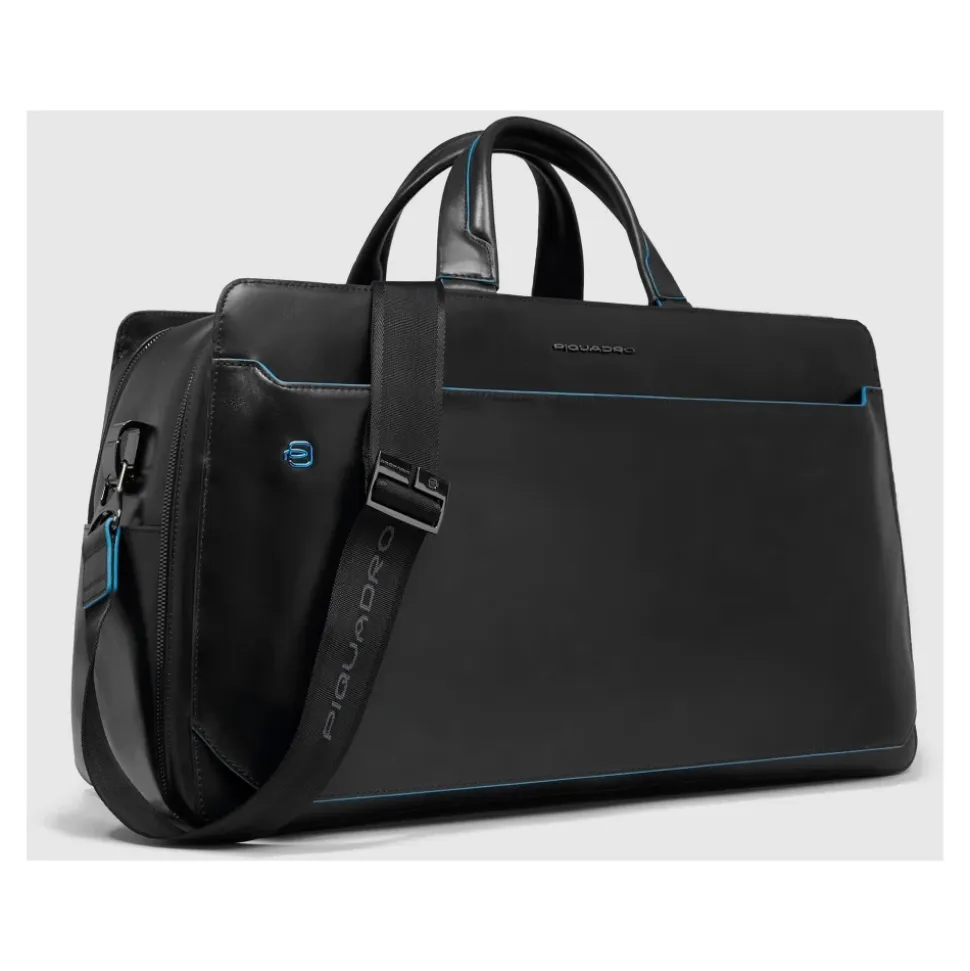 Piquadro personlig weekendtaske til 14″ laptop kombinerer kalveskindslæder af høj kvalitet med et polstret, stødabsorberende 14″ laptoprum og et personligt monogrammærke – designet til organiseret og stilfuld rejse. Nøgleattributter: Sort | Nero | Kalveskindslæder | Stødabsorberende laptoprum | Flygodkendt | 35 L kapacitet | Aftagelig, justerbar skulderrem | Trolley-monteringsrem | Flere indvendige lommer (lynlås, slip-in, pen) | AirPods®-lomme | Lommer til induktionsopladning og powerbank | To læderhåndtag | Tovejs-lynlåslukning | Personligt monogrammærke | Kalveskindsfinish af høj kvalitet | Logo polyesterforing | Mål og pasform: 52.0 x 30.0 x 23.0 cm | Sammensætning og pleje: Kalveskindslæder | 100% polyester (foring) | Rengør læder med et neutralt voksbaseret læderrensemiddel; brug ikke opløsningsmidler eller alkohol. Må ikke stryges eller renses.