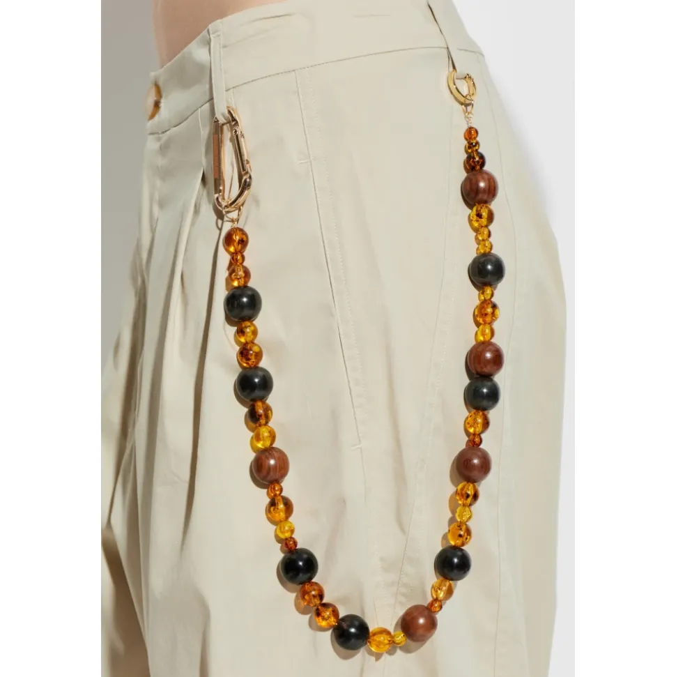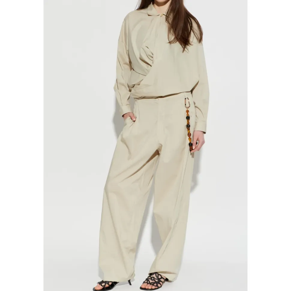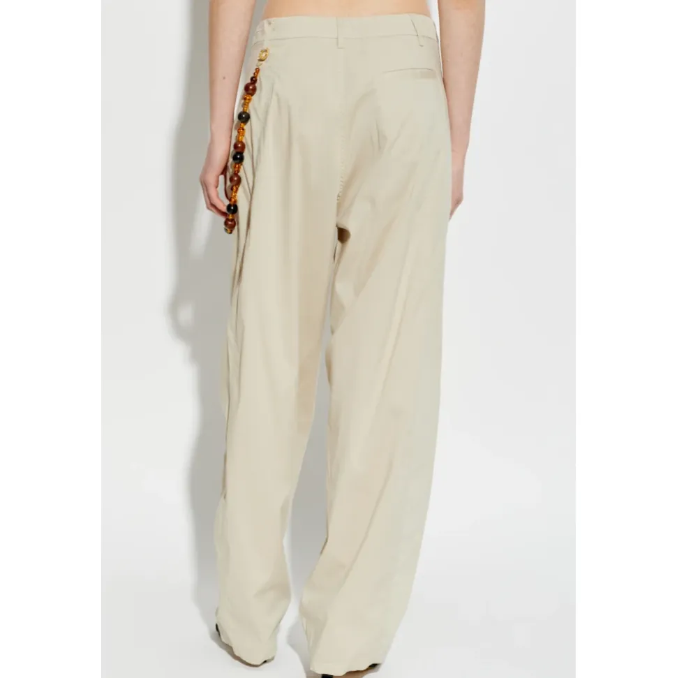 DARKPARK Phebe Trousers kombinerer afslappet, bredbenet skrædderi med en markant detalje med perlekæde, ideel til polerede hverdags- og aftenlooks. Nøgleattributter: Grå | Grå | Polyester | Åndbart stof | Blød, behagelig fornemmelse | Knap- og lynlåslukning foran | Skrålommer/sidelommer foran | Lige, brede ben med subtile læg foran | Dekorativ nøglering formet som en kæde med perleelementer ved højre lomme | Blød, mat tekstureret finish | Dimensioner & pasform: Modelhøjde: 177 cm | Modelbryst: 83 cm | Model talje: 61 cm | Model hofter: 89 cm | Modellen er iført størrelse: 40 | Afslappet pasform | Stor i størrelsen; overvej at gå en størrelse ned for en højere talje eller mere almindelig pasform | Sammensætning & pleje: 62% Polyester | 25% Viskose | 8% Uld | 5% Elastan