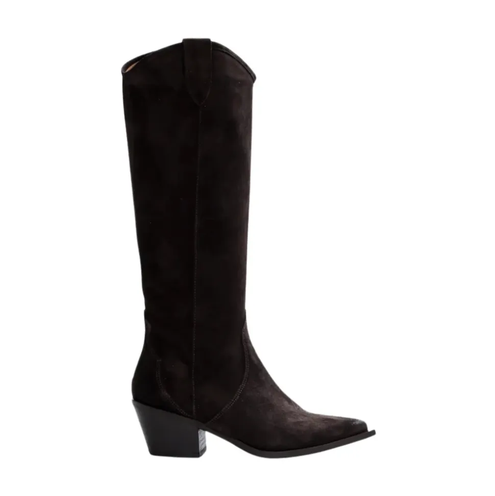Bukela’s Pheby Boot er en lang cowboy støvle fremstillet i blødt ruskind med et slankt skaft, der forsigtigt smyger sig om benet. Den vestlige silhuet og brede, stabile hæl kombinerer et tidløst look med en behagelig, bærbar højde. Vigtige egenskaber: Brun | Brun | Ruskind | Bred, stabil hæl for ekstra højde og komfort | Vestlig silhuet | Slankt, smalt skaft | Let buet skaftkant | Diskrete syninger | Dimensioner og pasform: Almindelig pasform | Sammensætning og pleje: 100% Ruskind