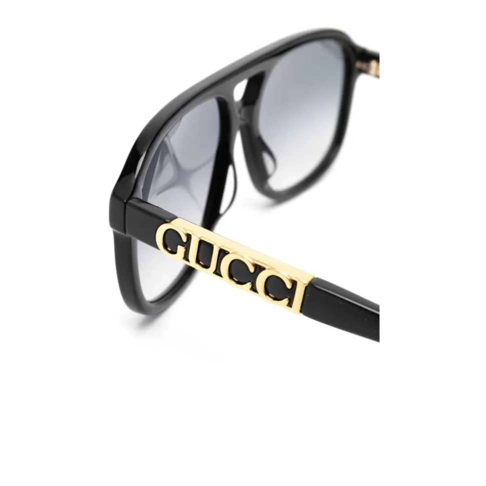 Gucci Pilot Solbriller designet til hverdagsbrug, der kombinerer en klassisk aviatorform med acetatstel og grå gradientglas. Designet balancerer stil og solbeskyttelse til alsidig daglig brug. Nøgleattributter: Sort | Acetat | 100% UV-beskyttelse | Inkluderer originalt etui, pudseklud, ægthedsbevis og garanti | Kan tilpasses med styrke (RX-able) | Pilot/aviatorform | Stel med fuld ramme | Guldfarvet logo på stængerne | Grå gradientglas | Mål & pasform: Glasbredde: 58 mm | Bro: 17 mm | Stanglængde: 140 mm | International pasform | Sammensætning & pleje: Acetat