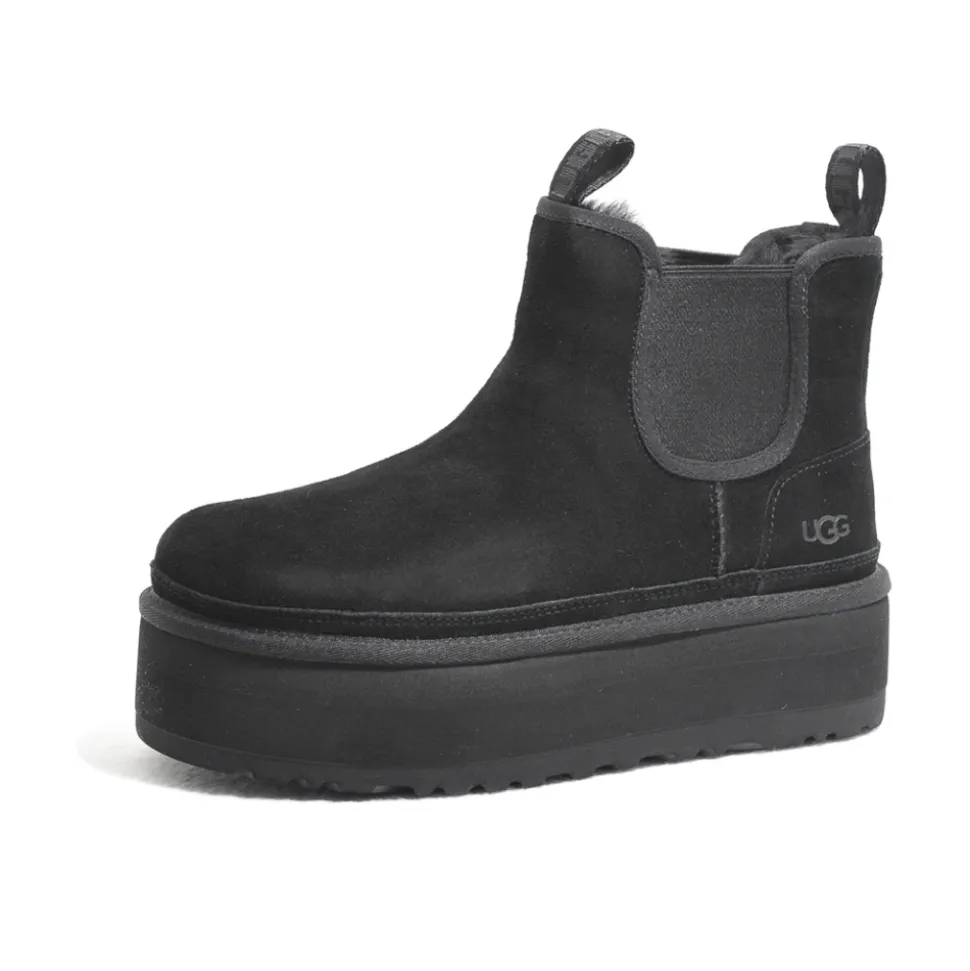 UGG Platform Chelsea kombinerer den klassiske Chelsea-silhuet med en hævet platformsål, hvilket giver ekstra højde og et moderne look. Ideel til at løfte hverdagsoutfits med en enkel slip-on stil. Vigtige egenskaber: Sort | Nero | Chelsea-silhuet | Platformsål
