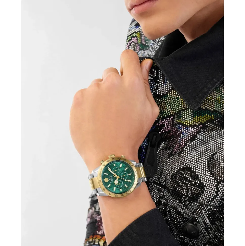 Oplev Pleinmeter Chrono, et sofistikeret ur fra Philipp Plein, der forener sporty æstetik med præcisionsteknologi. Dette ur er designet til dem, der sætter pris på en blanding af moderne flair og tidløs elegance. Produkt detaljer: Grøn | Silikone | Præcisions chronograph | Integrerede chronograph funktioner | Hexagonale motiver på urskiven | Distinkt branding på remmen | Sammensætning og pleje: Aftørres med en blød klud.
