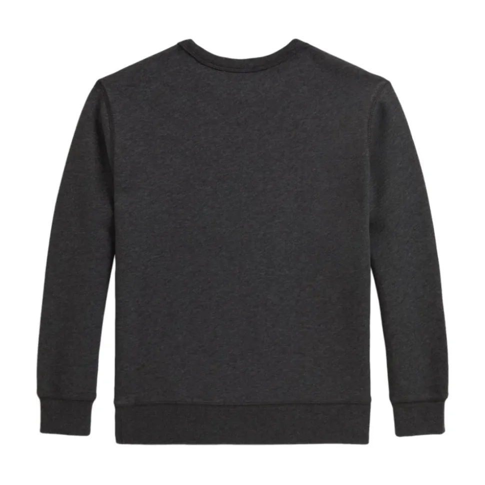 Ralph Lauren Polo Bear Sweatshirt er en fleece-strikket crew neck designet til hverdagsbrug, fremhævet af et signatur Polo Bear grafisk print, der tilføjer et legende fokuspunkt. Nøgleattributter: Grå | Grå | Fleece strik | Crew neck | Lange ærmer | Grafisk print Polo Bear motiv