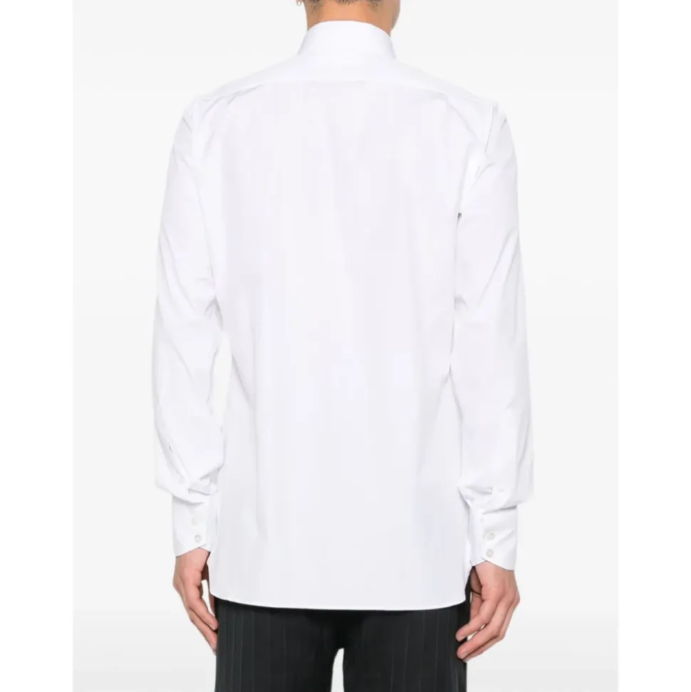 Tom Ford Poplin Classic Fit Shirt er en raffineret hvid bomuldspoplin skjorte designet til formel brug og forretningsbrug. Den har en klassisk krave og tøndemanchetter for et poleret, tidløst look. Vigtige egenskaber: Hvid | Bomuldspoplin | Knaplukning foran | Knapmanchetter | Klassisk krave | Tøndemanchetter | Garnfarvet fin poplin | Dimensioner & pasform: Klassisk pasform | Sammensætning & pleje: 100% bomuld | Maskinvask