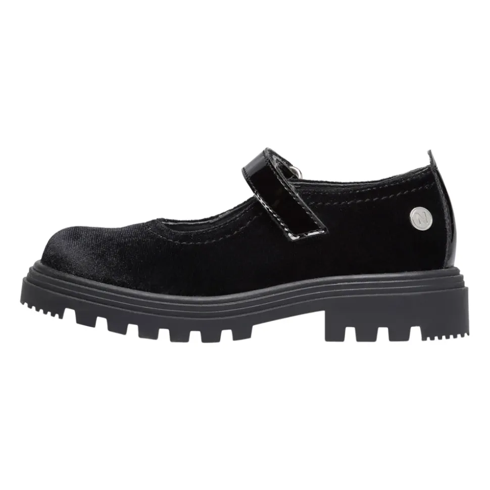 Naturino PREHA Ballerina kombinerer læder- og tekstilkonstruktion med en markant gummisål for slidstærk hverdagsbrug. Den afrundede tå og vristrem giver en sikker, klassisk ballerina silhuet. Vigtigste egenskaber: Sort | Læder og tekstil | Markant gummisål | Vristrem | Læderfor og indersål | Afrundet tå | Sammensætning & pleje: Læder | Tekstil | Gummi (sål)