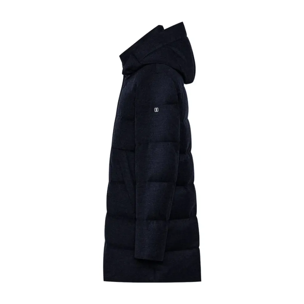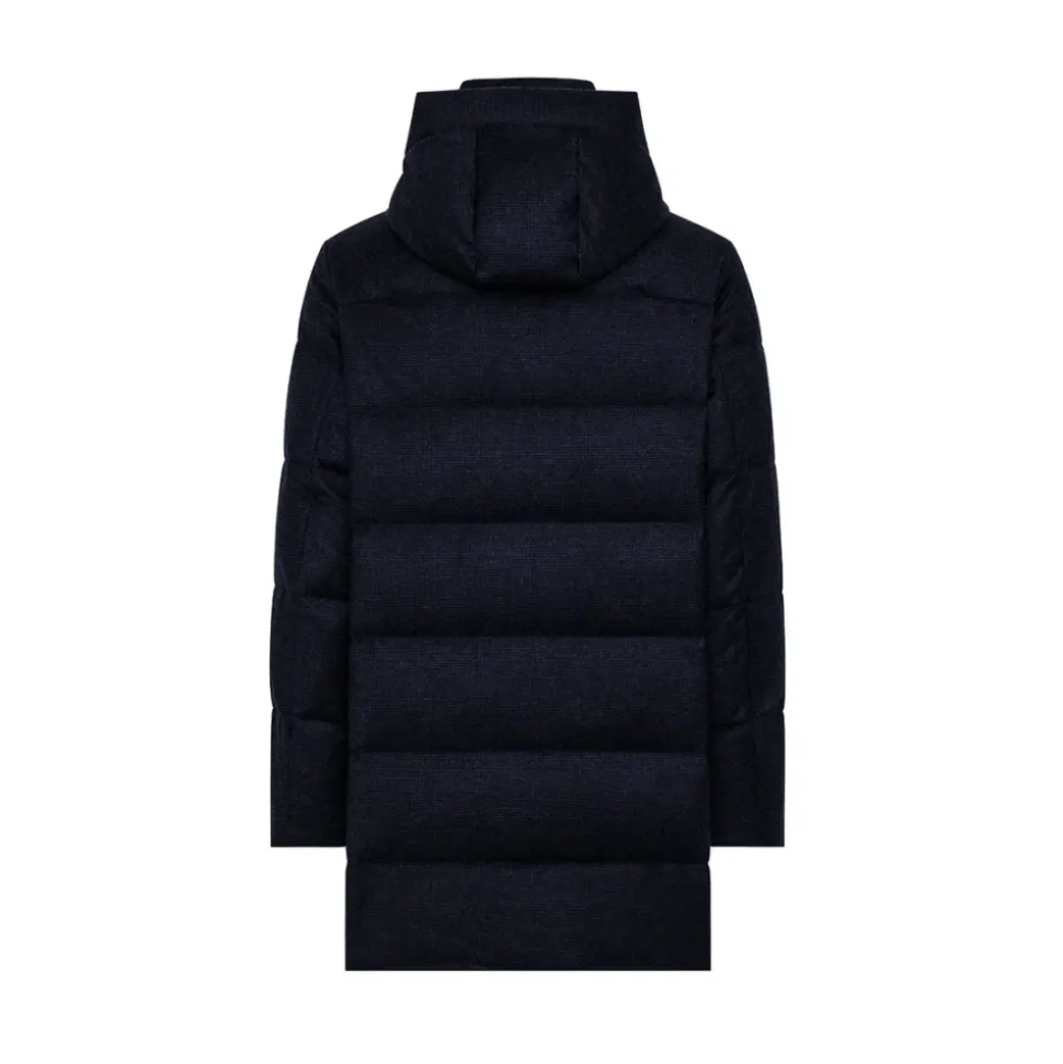 Duno Quiltet Parka med paspolerede sidelommer kombinerer Loro Piana uld- og cashmere-stof med dunisolering for pålidelig varme og beskyttelse mod vejret. Dens quiltede konstruktion og strømlinede lommer gør den til et praktisk valg til hverdagsbrug i koldt vejr. Nøglefunktioner: Blue | Blu | Jomfruuld og cashmere | Vandtæt ydeevne (Storm System®) | Vindtæt | Isolerende dunfyld | Lynlåslukning | Hætte | Justerbar kant | Quiltet mønster | Høj krave | Paspolerede sidelommer | Skjult trykknaplukning | Dimensioner og pasform: Regular fit | Sammensætning og pleje: Yderlag: 95% Jomfruuld, 5% Cashmere | Fyld: 90% Dun, 10% Fjer