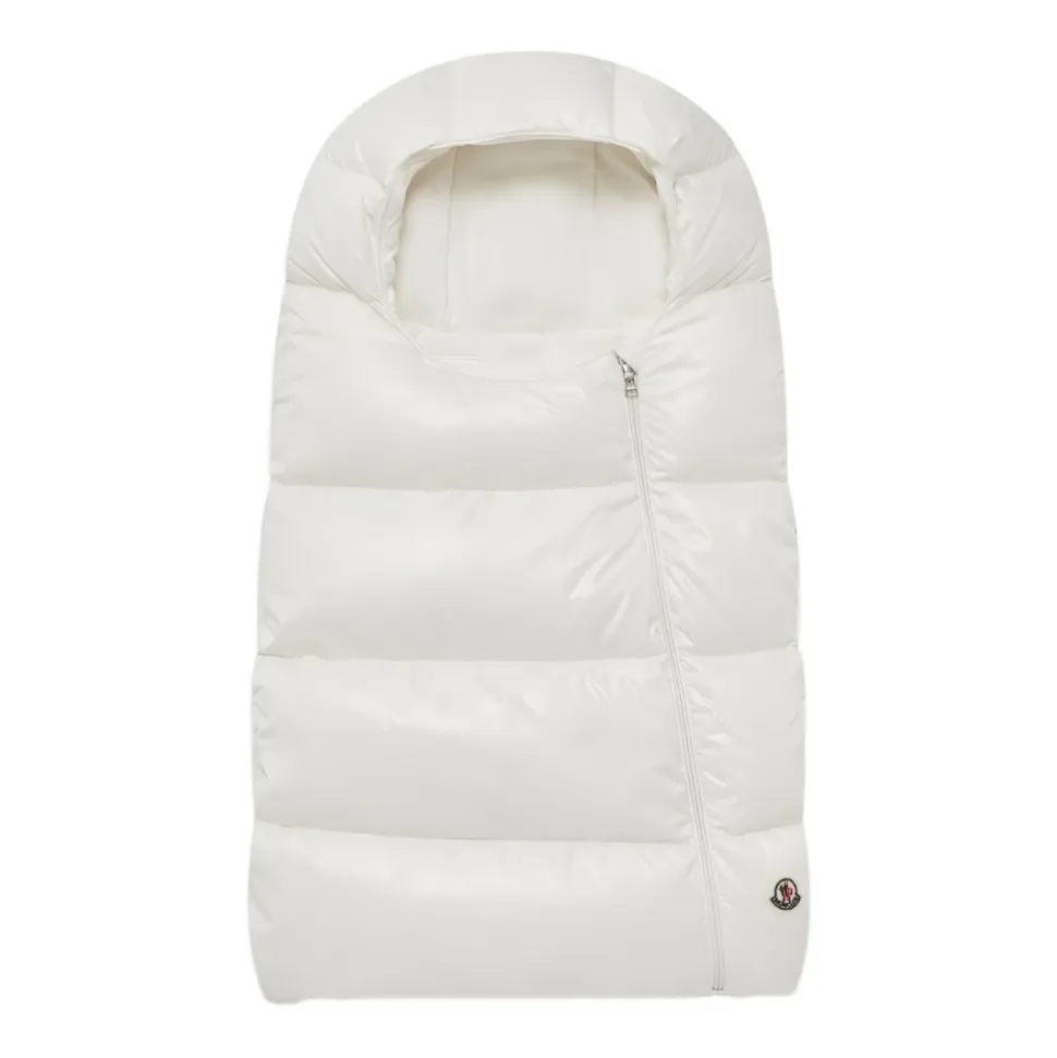 Moncler Quiltet Sovepose med Hætte kombinerer en matelassé quiltet yderside med en polstret inderside for at give varme under søvn; dens hætte og lynlåslukning gør påklædning og temperaturkontrol enkel. Vigtigste egenskaber: Hvid | Polyamid | Hætte | Lynlåslukning | Polstret inderside | Quiltet design | Matelassé effekt | Horisontal quiltning | Sammensætning & pleje: Yderstof: 100% polyamid | Foring: 100% bomuld | Vattering: 100% polyester | Maskinvask