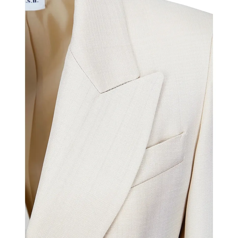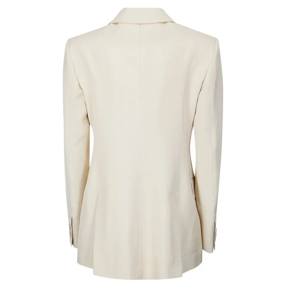 P.A.R.O.S.H. Rania Double-Breasted Jakke er en skræddersyet blazer designet til elegant, alsidig lagdeling. Dens dobbeltradede front og spidse revers skaber en struktureret, formel silhuet, der er velegnet til arbejde eller festlige lejligheder. Nøgleattributter: Beige | Champagne | Dobbeltradet lukning | Spidse revers | Klaplommer | Knaplukning foran