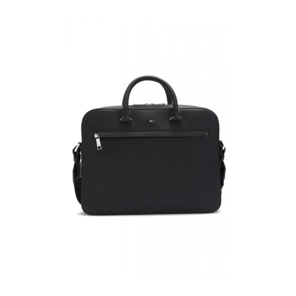 Hugo præsenterer Ray_S Doc Case N., en kompakt dokument- og laptop taske designet til at bære en 13-tommers laptop og de daglige arbejdsbehov med organiseret opbevaring. Nøgleattributter: Sort | Kornet syntetisk belagt stof | Justerbar og aftagelig skulderrem | Toplynlåslukning | Smart ærme bagpå til rejsebrug | Flere indvendige og udvendige lommer | Dedikeret 13-tommers laptoprum | Kornet syntetisk tekstur | Poleret sølvfarvet hardware | Logo detaljering på fronten | Dimensioner og pasform: Længde: 38 cm | Højde: 29 cm | Dybde: 7 cm | One size | Passer til op til 13-tommers laptop | Sammensætning og pleje: Polyurethan | Polyester