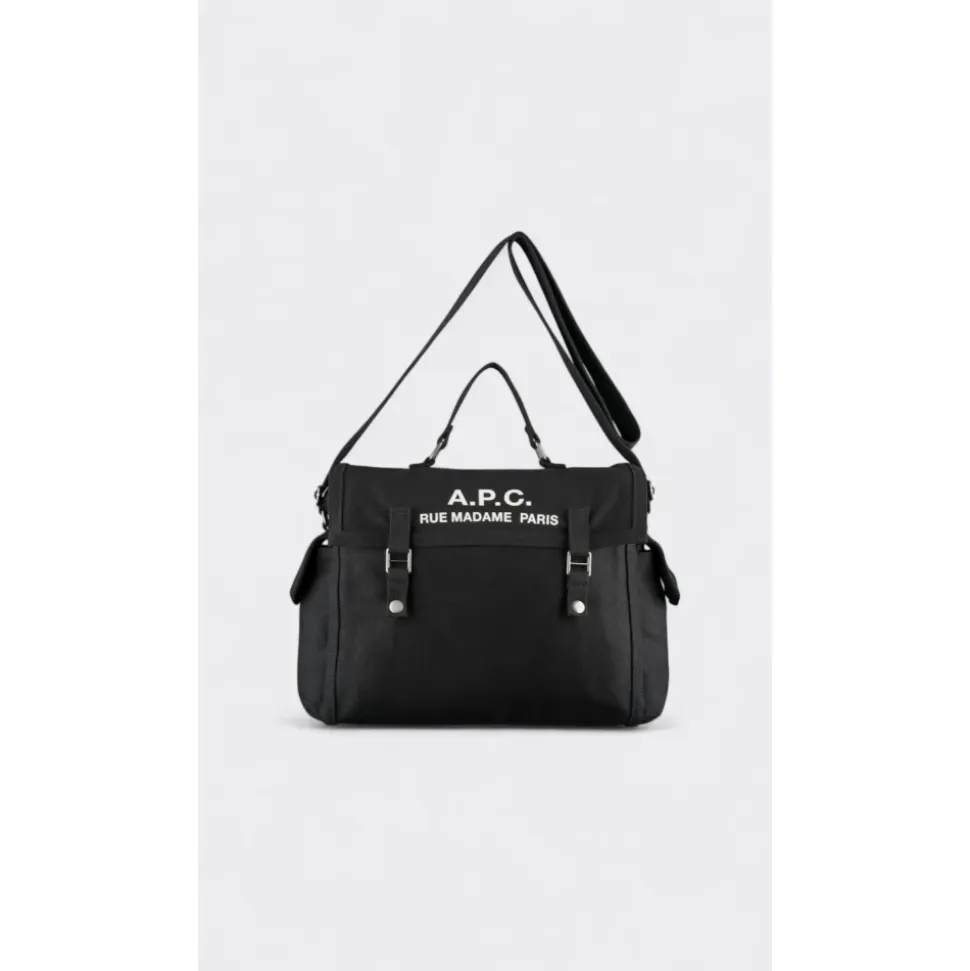 A.P.C. Recuperation Satchel er en kompakt messenger taske i bomuldslærred med et militærinspireret design. Den tilbyder organiseret opbevaring og alsidige bæremuligheder til hverdagsbrug. Nøgleattributter: Sort | Noir | Bomuldslærred | Justerbar skulder-/crossbodyrem | Top håndtag | Trykknaplukning | To sidelommer | Indvendig lynlåslomme | Baglomme med knap | Militærinspireret design | Screen-printet “A.P.C. Rue Madame Paris” logo | Satchel silhuet | Dimensioner & pasform: 35 x 28 x 11 cm | Sammensætning & pleje: Bomuld