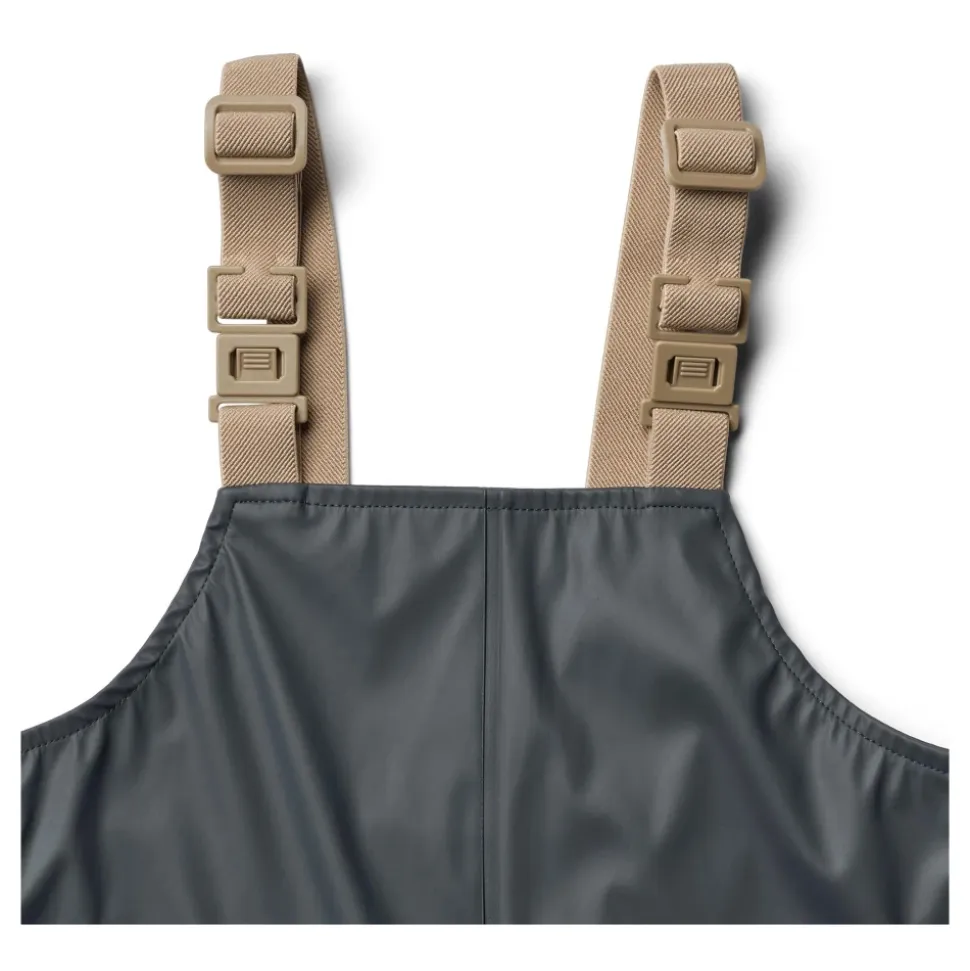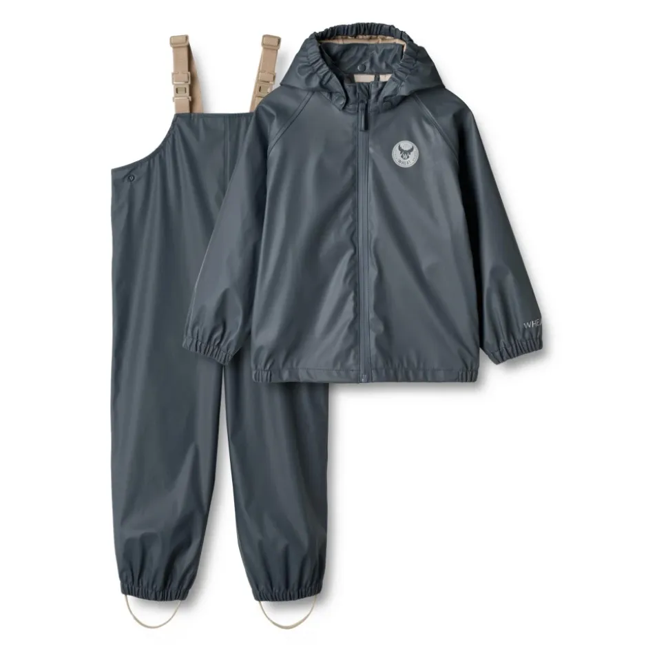 Vær forberedt på regnfulde dage med Wheat – Rainwear Charlie i blæk. Denne ensfarvede mørkeblå regnsæt er velegnet til både drenge og piger og består af en regnjakke og regnbukser. Jakken har en aftagelig og justerbar hætte, elastiske ærmekanter, vandtæt lynlås med hagebeskytter, sidelommer og logo-reflekser. Bukserne har justerbare elastiske seler, justerbare fodstropper, trykknapper i taljen og logo-reflekser. Wheats praktiske regnsæt er lavet af blødt, let materiale, der sikrer komfort og bevægelsesfrihed. Det er vandtæt, smudsafvisende og nemt at rengøre. Kombiner det med Wheats termotøj for ekstra isolering på kolde dage. Materiale: 100% polyester med blød polyurethanbelægning. Standard 100 af OEKO-TEX® certificeret. Vandtryk: 8.000 mm. Alle sømme er vandtætte og svejset. Vandtæt lynlås. Vask: Maskinvask ved 40 grader. Må ikke tørretumbles. Husk at følge vaskeanvisningerne. Stilnummer: 7350i-970R_1060.