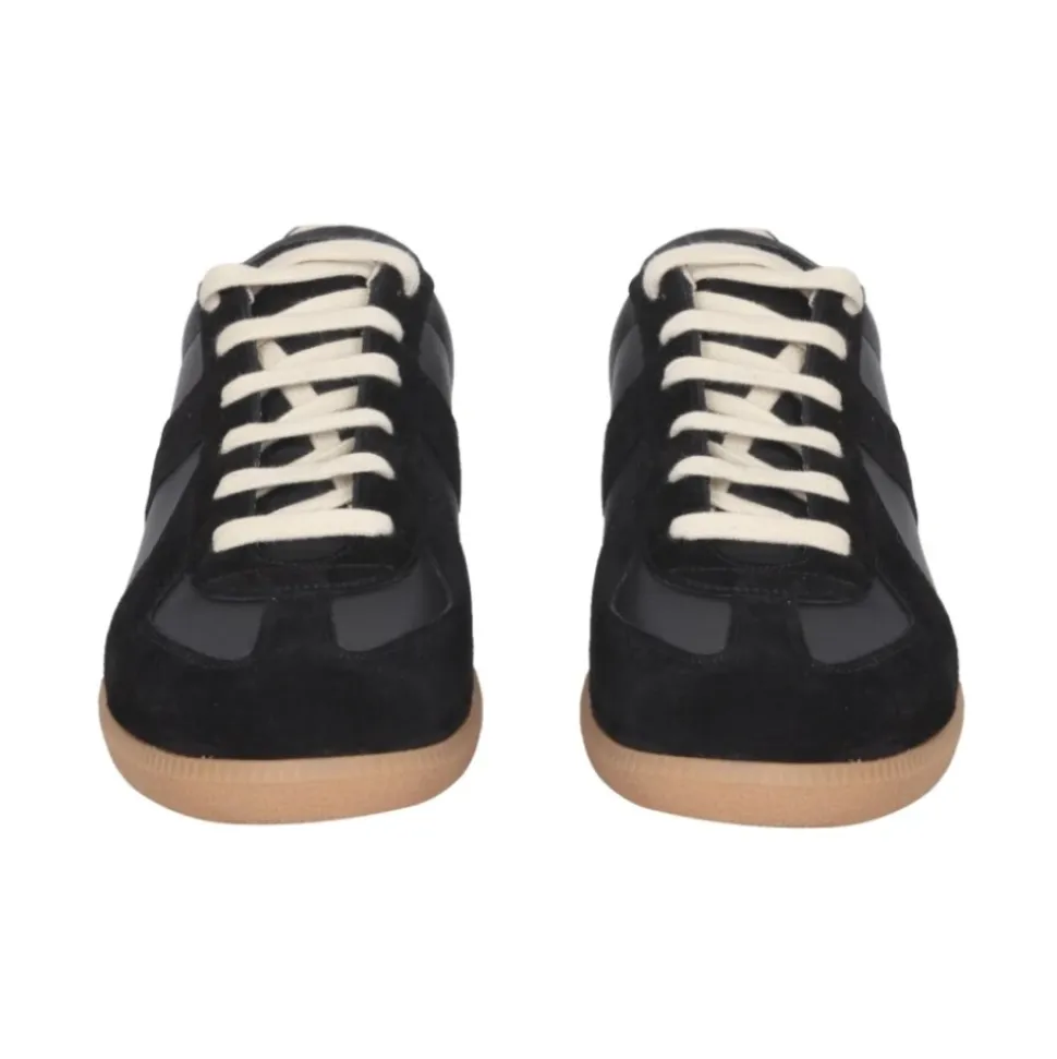 Forny din sneakersamling med disse stilfulde, lave sneakers i en unik blanding af læder og ruskind. Designet til både komfort og mode, er de perfekte til hverdagsbrug. Produkt detaljer: Sort | Kalveskind | Ruskind | Snørebånd | Sorte ruskinddetaljer | Brun sål | Hvide syninger | Dimensioner og pasform: Regular fit | Sammensætning og pleje: 100% kalveskind | 100% bomuld | 100% gummi | Tørres af med en fugtig klud.
