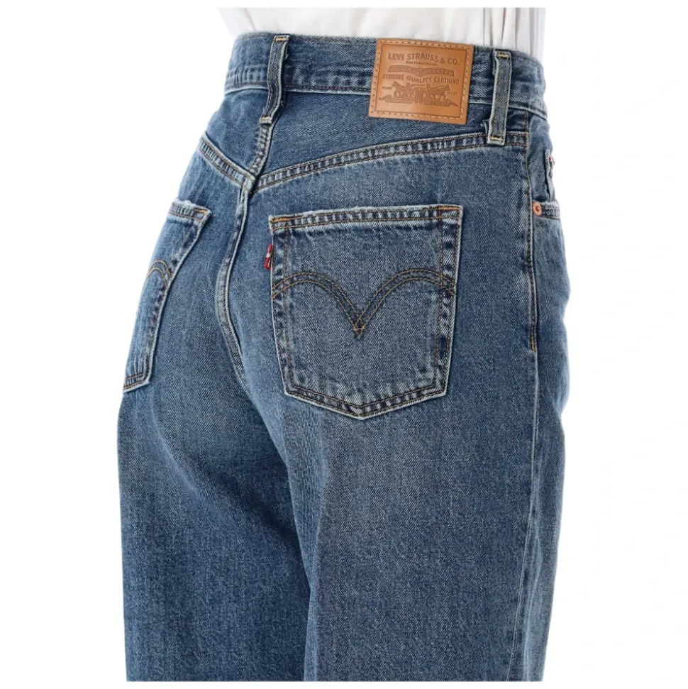 Bomuld Ribcage wide leg jeans fra Levi’s. Med: Super høj talje Knap og lynlås lukning Bæltestropper Fem lommer Wide ben Model er 1,70 m og bruger størrelse 26