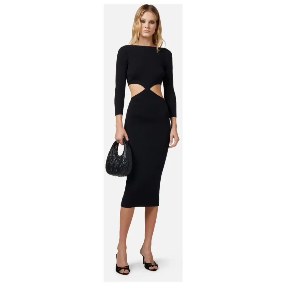 Oplev elegancen i den ribstrikkede midi kjole med udskæring fra Elisabetta Franchi, skabt til dem, der sætter pris på tidløs stil. Denne sorte strikkede kjole er perfekt til hverdagsbrug og har et elegant cut-out design, der tilføjer et moderne twist. Produkt detaljer: Sort | Viskose | Ribstrikket tekstur | Cut-out design | Dimensioner og pasform: Almindelig pasform | Sammensætning og pleje: Viskose | Renseri anbefales