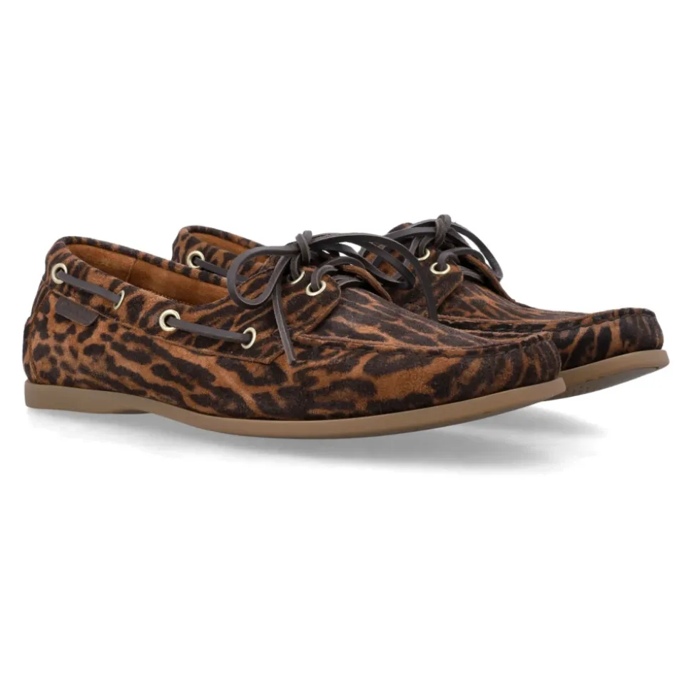 Tom Ford Robin Sejlersko er en raffineret udgave af den klassiske sejlersko, fremstillet i kalveskindsruskind med en snørelukning og gummisål med lameller for pålideligt greb. Vigtige egenskaber: Brun | Brun whiskey ocelot | Kalveskindslæder | Gummisål for forbedret greb | Snørelukning | Læder indersål | Klassisk sejlersko silhuet | Tonal logo patch | Dimensioner og pasform: Normal i størrelsen | Sammensætning og pleje: Overdel: 95% kalveskindslæder, 5% messing | Foring: 100% kalvelæder | Sål: 100% gummi