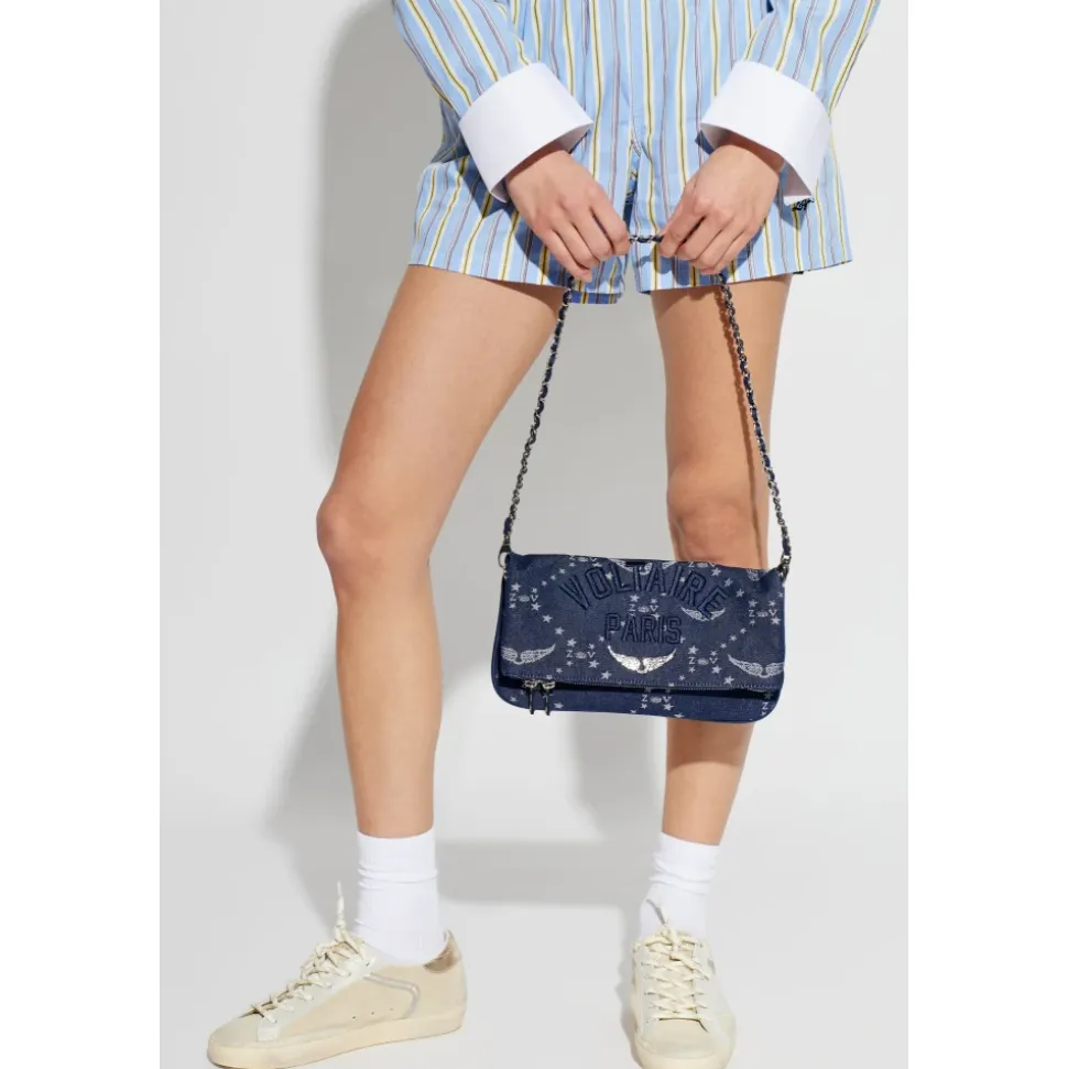 Zadig & Voltaire Rock Skuldertaske er et kompakt, signaturtilbehør, der kombinerer en rektangulær silhuet med karakteristiske metalvinger og en sølvfarvet kæderem for alsidig brug fra dag til nat. Vigtige egenskaber: Blå | Marineblå | Kalveskind | Slidstærk, kornet tekstur | Sølvfarvet kæderem | Klap med metallås | Baglomme med lynlås | Rektangulær, aflang silhuet | Metalvinger med hævet logo og “PARIS” inskription | Delikate stjerner og designermotivsymboler | Kontrasterende lyse prints og intrikate broderier | Klaplukning med metallås | Mål og pasform: Højde: 12 cm | Bredde på bredeste sted: 26,5 cm | Modelmål: Højde: 176 cm, Bryst: 85 cm, Talje: 60 cm, Hofte: 89 cm | Sammensætning og pleje: Yderstof: 100% kalveskind | For: 100% bomuld