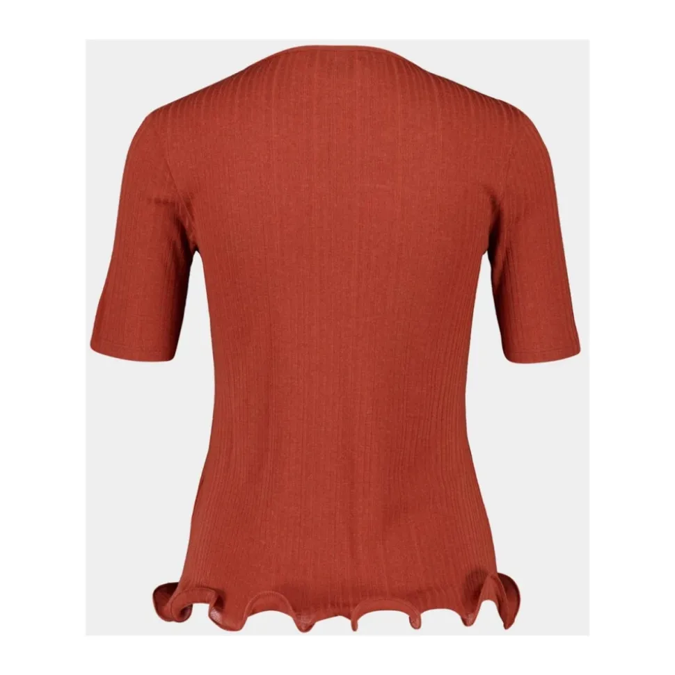 Fendi Roma Rib T-Shirt er en ribstrikket kortærmet top, der kombinerer en rund halsudskæring med karakteristiske bølgede sømdetaljer. Elegant, men alligevel afslappet, den fungerer godt lagdelt eller båret alene for et raffineret hverdagslook. Nøgleattributter: Rød | Rustrød | Polyester | Rund halsudskæring | Korte ærmer | Ribbet tekstur over brystet | Karakteristiske bølgede sømdetaljer | Dimensioner og pasform: Tætsiddende silhuet | Sammensætning og pleje: 100% Polyester | Maskinvask ved skånsom kold vask