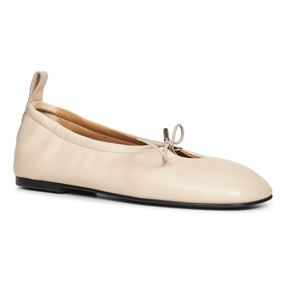 ALOHAS Rosalind Læder Ballerinaer kombinerer en formet firkantet tå med en justerbar snøre for en sikker, hverdags slip-on. Den uforede læderoverdel og fleksible cuerolite-sål giver en behagelig flad sko til daglig brug. Vigtigste egenskaber: Creme | Læder | Fleksibel cuerolite-sål | Slip-on | Justerbar elastisk snøre foran med metalender | Elastisk bagpå | Læder pull-tab ved hæl | Læder indersål | Formet firkantet tå | Keyhole udskæring | Uforet glat læderoverdel | Dimensioner og pasform: Hælhøjde: 10 mm | Svarer til IT 38 størrelse | Sammensætning og pleje: 100% Læder