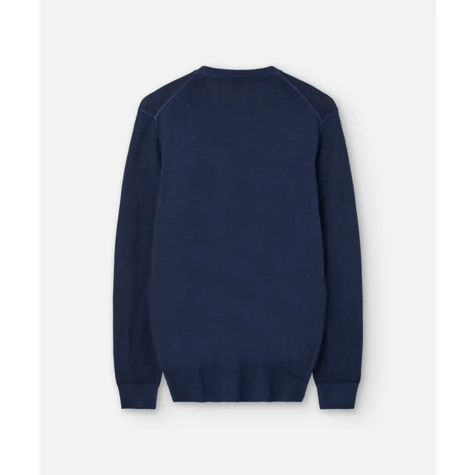 Fedeli rundhalset strik fremstillet i vasket merinould tilbyder en raffineret hverdagsstrik med en ren silhuet og blød følelse. Nøgleattributter: Blå | Merinould | Strikket konstruktion | Ribstrikkede manchetter og søm | Rund halsudskæring | Lange ærmer | Sammensætning & pleje: 100% merinould | Maskinvask kold. Vask ved 30°C.