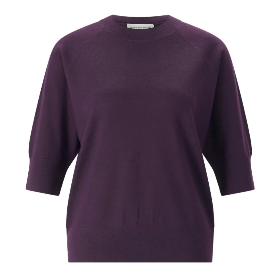 Dries Van Noten rundhalset strik er en let merinouldpullover designet til brug hele sæsonen. Den fremhæver en blød fornemmelse og en minimalistisk silhuet for et raffineret, tidløst look. Nøgleattributter: Lilla | Dunkellila | Merinould | Let | Termoregulerende | Blød fornemmelse | Rund halsudskæring | Korte ærmer | Lige snit | Minimalistisk silhuet | Dimensioner og pasform: Almindelig pasform | Lige snit | Sammensætning og pleje: Merinould
