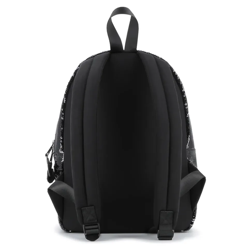 Karl Lagerfeld rygsæk med pailletter kombinerer en funklende pailletfinish over det hele med praktisk organisering til hverdagsbrug. Den kombinerer dekorativ appel med funktionelle detaljer som en lynlåslomme foran og polstrede stropper. Nøgleattributter: Sort | Polyester | Dobbelt lynlåslukning | Lynlåslomme foran | Polstrede justerbare skulderstropper | Bærehåndtag foroven | Pailletudsmykning over det hele | Skinnende pailletdekoration | Sammensætning og pleje: 100% polyester