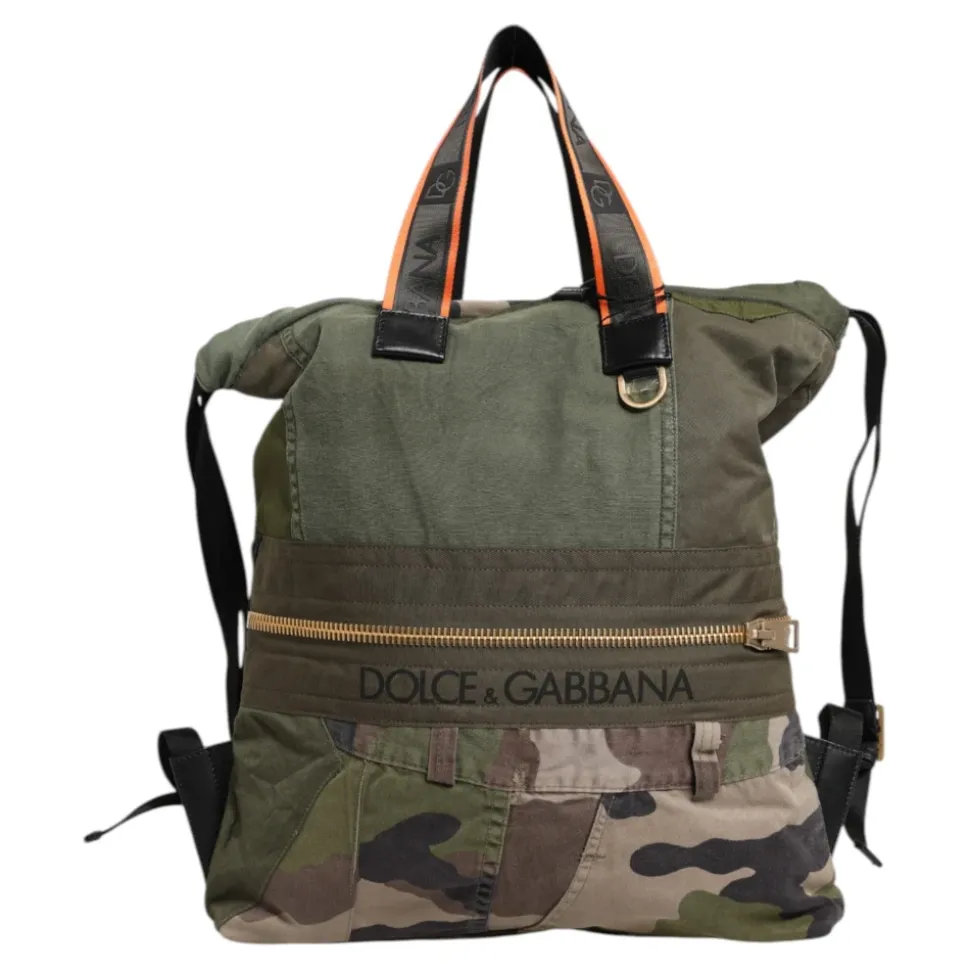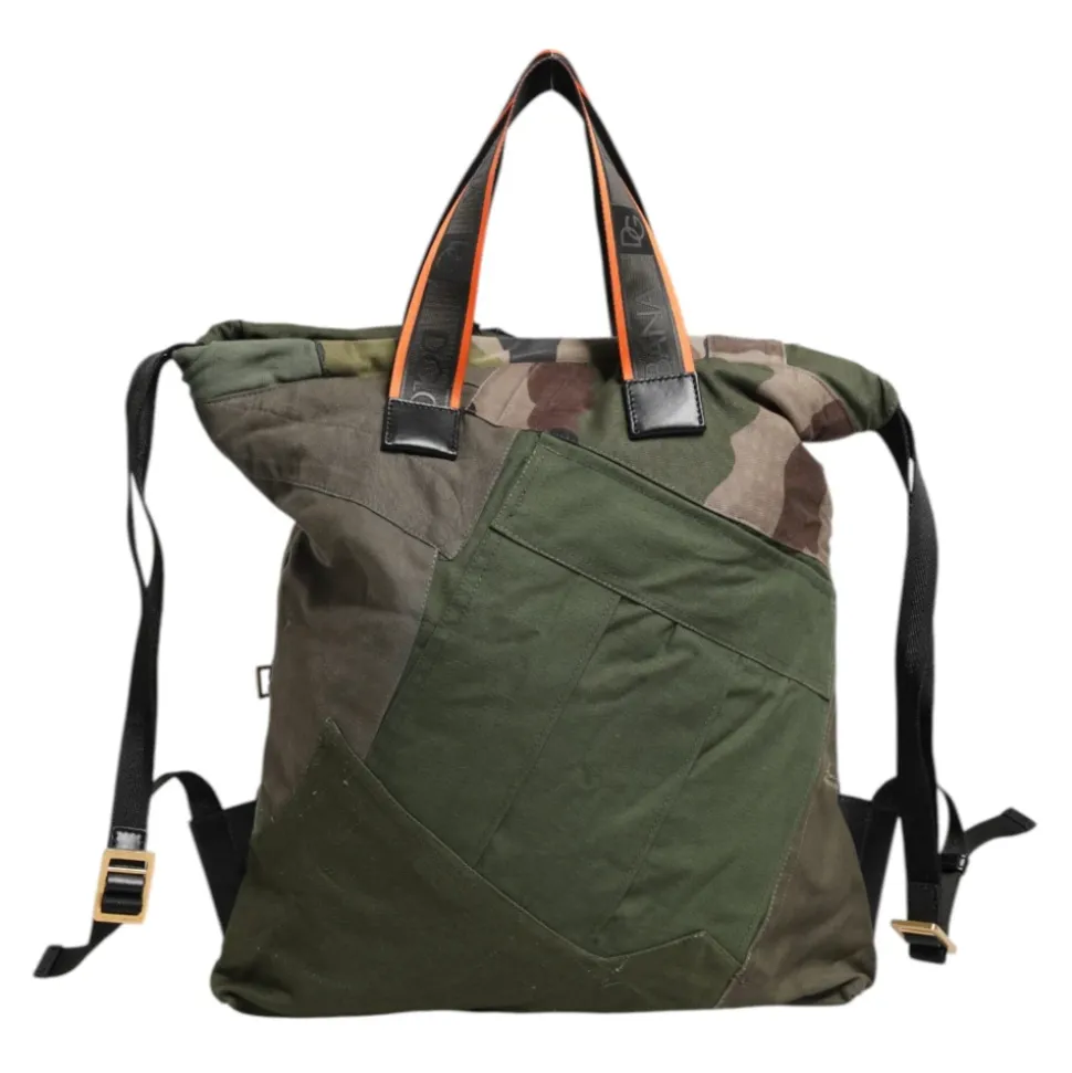 Dolce & Gabbana rygsæk kombinerer militærgrønt patchwork og camouflage-detaljer med en praktisk snørelukning og indvendige lommer til organiseret, hverdagsbrug. Nøgleattributter: Grøn | Bomuld | Snørelukning | Indvendige lommer | Fuldt foret | Patchwork | Camouflagemønster | Brand logo | Logo-indgraveret metal hardware | Almindelig vævning | Dimensioner og pasform: 38 cm x 47 cm x 5 cm | Rem: 60 cm x 2 cm | Sammensætning og pleje: 80% Bomuld | 10% Nylon | 10% Kalveskind | Indvendig foring af stof