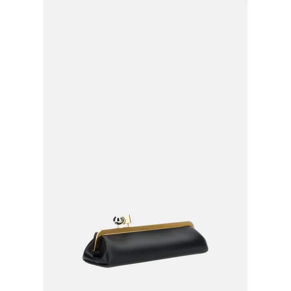 Jacquemus’ Salon clutch er en lang, strømlinet taske fremstillet i ultra-blødt lammeskind. Den kombinerer en aftagelig, tynd skulderrem med en karakteristisk spænde i blandet metal til alsidig brug både dag og aften. Vigtige egenskaber: Sort | Lammeskindslæder | Aftagelig, tynd skulderrem | Spænde lukning med blandede metaldetaljer | Indvendig læder patch lomme | Lang clutch silhuet | Kontrast runde og firkantede spænde detaljer | Sølv- og guldfarvet metal hardware | Påsat indvendig læderlomme | Ultra-blød lammeskindsfinish | Dimensioner og pasform: Længde: 35 cm | Højde: 12 cm | Dybde: 8.5 cm | Sammensætning og pleje: 100% lammeskind | Foring: 100% bomuld | Undgå kontakt med kosmetik, vand og varme. Undgå langvarig udsættelse for sollys. Opbevares i støvposen på et tørt sted.