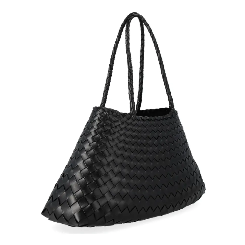 Dragon Diffusion Santa Croce Big er en håndvævet lædertaske, der defineres af sin kurvevævskonstruktion og rummelige, uforede interiør. Ideel til hverdagsbrug i byen, den har to håndvævede læderhåndtag og en signatur St. Christopher-charm indeni. Nøgleattributter: Sort | Nero | Læder | Uforet interiør (åben top) | To håndvævede læderhåndtag | Intern St. Christopher-charm | Rummeligt hovedrum | Håndlavet konstruktion | Håndvævet kurvevævskonstruktion | Tilspidset remdetaljering | Åben top silhuet | Tekstureret vævet læderfinish | Dimensioner og pasform: 44 x 23 x 14 cm | Topbredde: 20 cm | Bundbredde: 44 cm | Højde/Længde: 23,5 cm | Håndtag drop: 22 cm | One size | Sammensætning og pleje: 100% Læder | Dup fugtighed straks med en blød, tør klud. Undlad at nedsænke i vand eller bruge kunstig varme til at tørre; lad det tørre naturligt i et godt ventileret område. Undgå tunge belastninger for at forhindre deformation af formen. Opbevar i en støvpose, når den ikke er i brug. Naturlige farvestoffer kan bløde i starten; lad tasken udvikle patina ved brug.