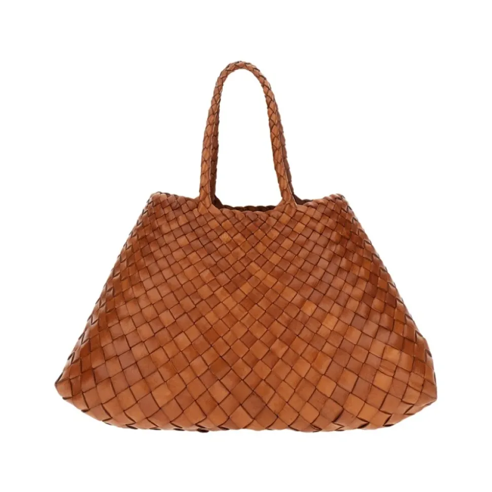 Dragon Diffusion Santa Croce Small er en håndvævet taske i kurvestil, fremstillet i bøffellæder. Dens åbne konstruktion uden foring og dobbelte håndtag gør den ideel til hverdagsbrug i byen eller afslappede udflugter. Vigtigste egenskaber: Tan | Bøffellæder | Uden foring | Åben top | Dobbelte håndtag | Håndvævet kurvemønster | Tilspidset top med diagonalt chevronmønster | Åben silhuet | Mål og pasform: Topbredde: 17 cm | Bundbredde: 38 cm | Længde: 20 cm | Håndtagshøjde: 16,5 cm | Sammensætning og pleje: Bøffellæder | Tørres af med en blød, tør klud. Undgå langvarig udsættelse for vand og direkte sollys. Opbevares i en støvpose, når den ikke er i brug. Ved pletter, kontakt en professionel læderrenser.