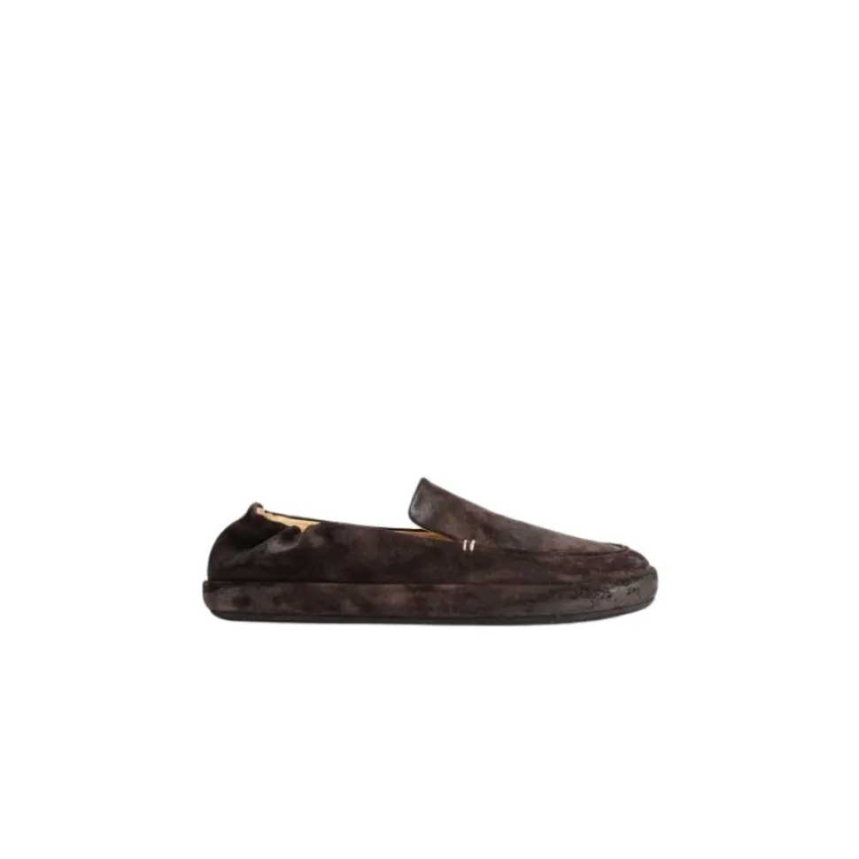 Marsell Scatopelle Loafer kombinerer vendt læder med håndlavede, hævede syninger for en raffineret, men praktisk hverdagssko. Dens skridsikre gummisål og læderkonstruktion giver et stabilt og holdbart slid. Vigtige egenskaber: Mørkebrun | Læder | Skridsikker sål | Holdbar til hverdagsbrug | Skridsikker gummisål | Læder samles ved hælen for en fleksibel pasform | Vendt læderfinish | Håndlavede, hævede syninger | Lateral læderindpakning | Ren silhuet | Sammensætning & pleje: 100% læder