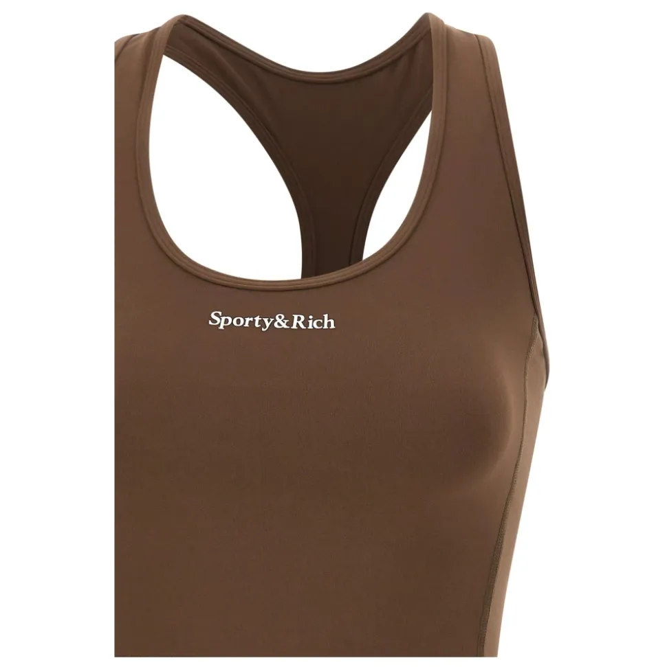 Sporty & Rich Serif Logo Sports Cropped Tank kombinerer strækbar støtte med en racerback silhuet til træningssessioner og hverdags athleisure-beklædning. Vigtigste egenskaber: Brun | Nylon og spandex | Strækbart stof | Støttende, mellemvægtig konstruktion | Serif logo print på brystet | Racerback udskæring | Cropped snit | Dimensioner & pasform: Regular fit | Cropped længde | Sammensætning & pleje: 82% nylon, 18% spandex | Maskinvask