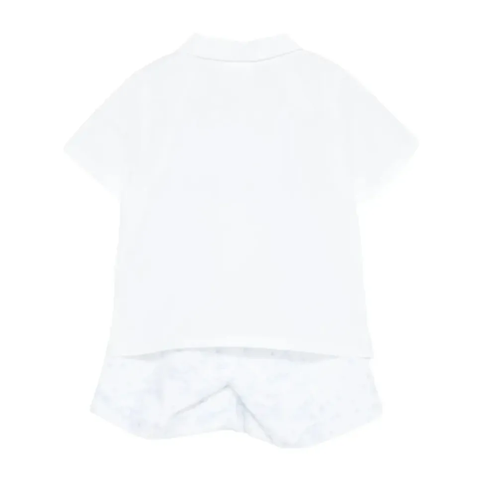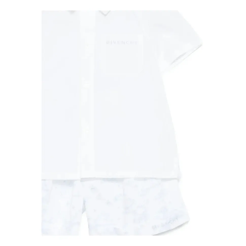 Givenchy Shirt og Shorts Sæt kombinerer en bomuldsskjorte med knapper og en logobrystlomme med printede shorts med elastisk linning for nem hverdagsbrug. Nøgleattributter: Hvid | Bomuld | Knaplukning | Elastisk linning | Logo ved kant | Kortærmet skjorte | Brystlogolomme | All-over print på shorts | Skjorte med knaplukning foran | Sammensætning & pleje: 100% Bomuld | Maskinvask max 30°C, skånsom cyklus.