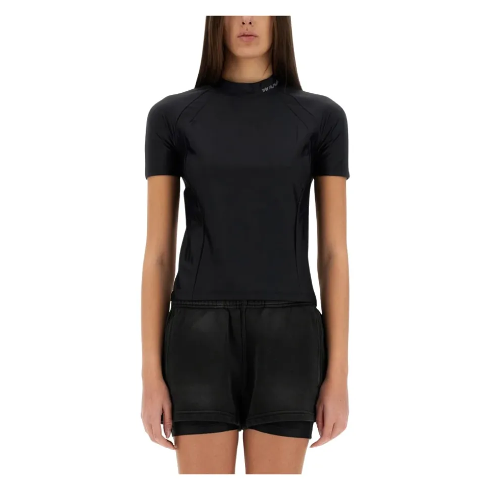 Alexander Wang Short Sleeve Rashguard Top tilfører en atletisk-inspireret silhuet med mock-neck til hverdags- og træningsbrug. Det strækbare nylon-elastan materiale og de strømlinede sømdetaljer giver en elegant, tætsiddende pasform med et sporty look. Vigtige egenskaber: Sort | Nylon | Strækbart materiale | Pull-on model | Mock neck | Korte ærmer | Raglanærmer | Atletisk-inspireret sømdetaljer | Logo ved halsudskæringen | Dimensioner og pasform: Slim fit | Sammensætning og pleje: 78% Nylon, 22% Elastan