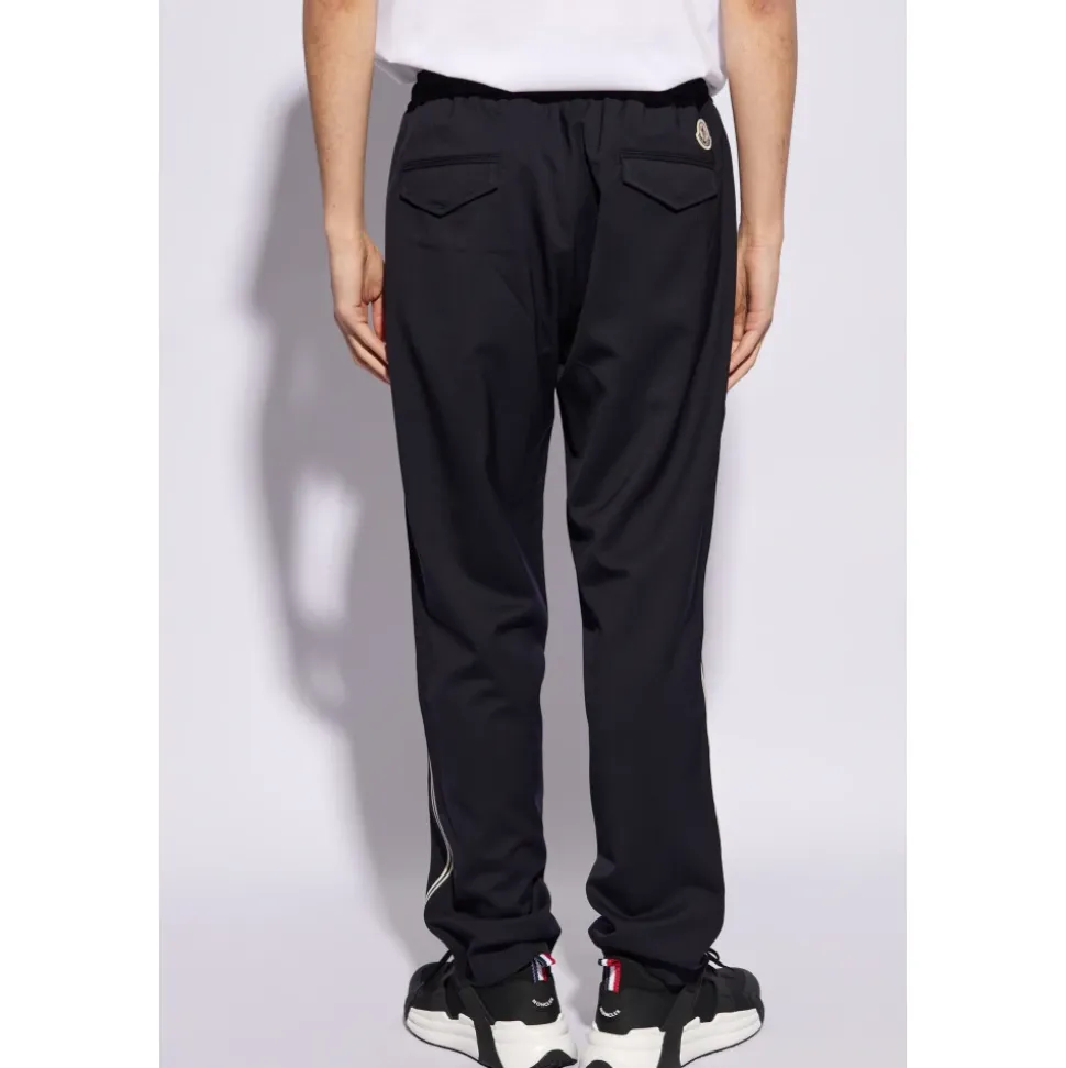 Monclers Side-stripe Bukser tilbyder en stilfuld blanding af komfort og funktionalitet, perfekt til afslappede udflugter. Med et farverigt logo-patch på bagsiden er disse bukser designet til dem, der sætter pris på subtil branding med praktisk design. Produkt detaljer: Navy Blue | Blue | Uld | Polyester | Snøre i taljen | To forlommer | To baglommer med klap og trykknapper | Let tilspidsede ben | Sort og hvid sidepaneler | Broderet logo | Dimensioner og pasform: Regular fit | Sammensætning og pleje: 54% Uld | 46% Polyester | Renseri anbefales