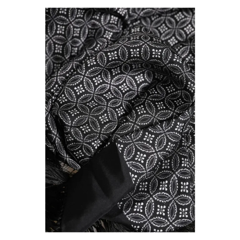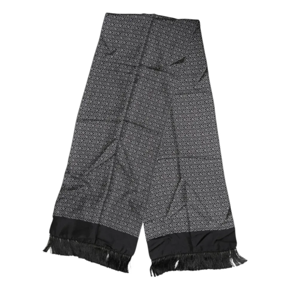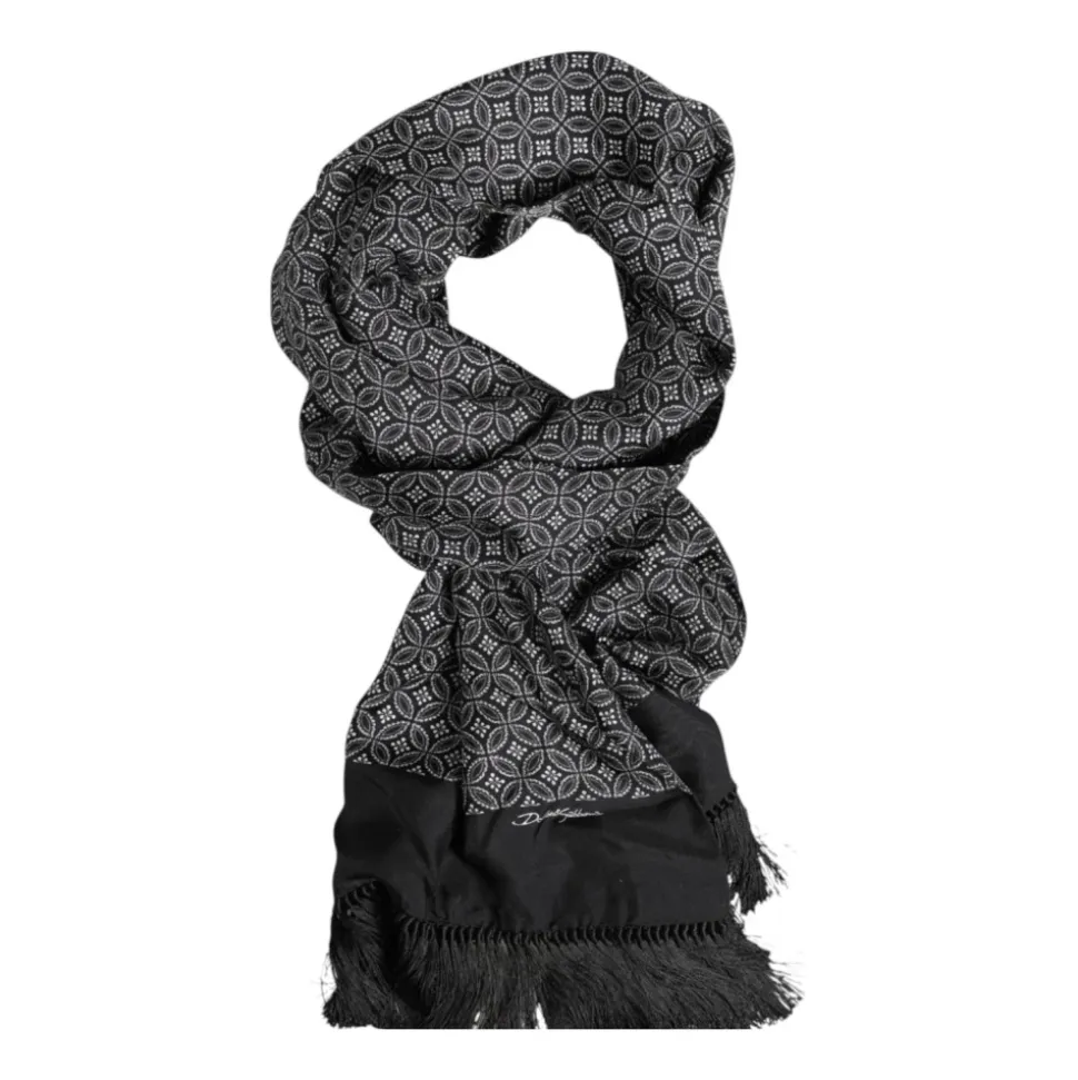 Forhøj din stil med denne luksuriøse Dolce & Gabbana herrefoulard-sjal. Lavet af 100% silke, dette elegante tilbehør har et tidløst sort mønster med frynser, subtile logo detaljer og ekspert italiensk håndværk. Med målene 175 cm x 33 cm tilbyder det både god dækning og stil.