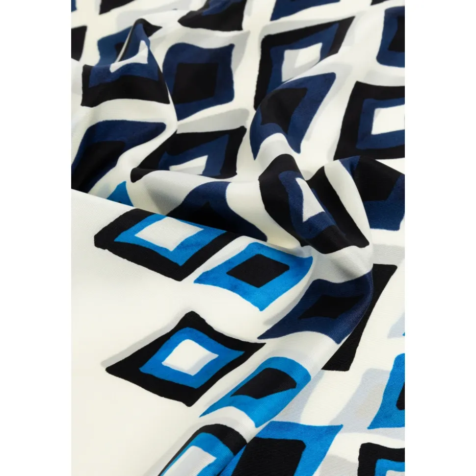 SILK SCARF fra den eksklusive LANVIN-kollektion er en fantastisk fusion af subtilitet og sofistikering. Den kombinerer harmonisk tidløst hvidt med et geometrisk diamantmønster i nuancer af blåt, sort og delikate gråtoner, hvilket skaber en dynamisk, moderne karakter. Tørklædet er håndværksmæssigt fremstillet af den højeste kvalitet silke – dets bløde tekstur og subtile glans fremhæver dets raffinerede natur. Præcist færdige, kvadratiske kanter vidner om perfekt håndværk, mens det karakteristiske marineblå “LANVIN”-logo elegant placeret i hjørnet tilføjer prestige og genkendelse til hele designet. Dette er et tidløst tilbehør, der personificerer parisisk chic i ånden af konceptet “le Chic Ultime”. HVORFOR SKAL DU VÆLGE DETTE PRODUKT? * Enestående silkekvalitet for en luksuriøs følelse * Unikt geometrisk mønster for at fremhæve din individuelle stil * Signaturen fra det ældste franske modehus * Et tidløst tilføjelse til ethvert outfit * Præcis færdiggørelse og raffineret farvepalet Højde: 90 cm Bredde: 90 cm Modelens målinger Højde: 193 cm Bryst: 95 cm Talje: 82 cm Hofter: 93 cm