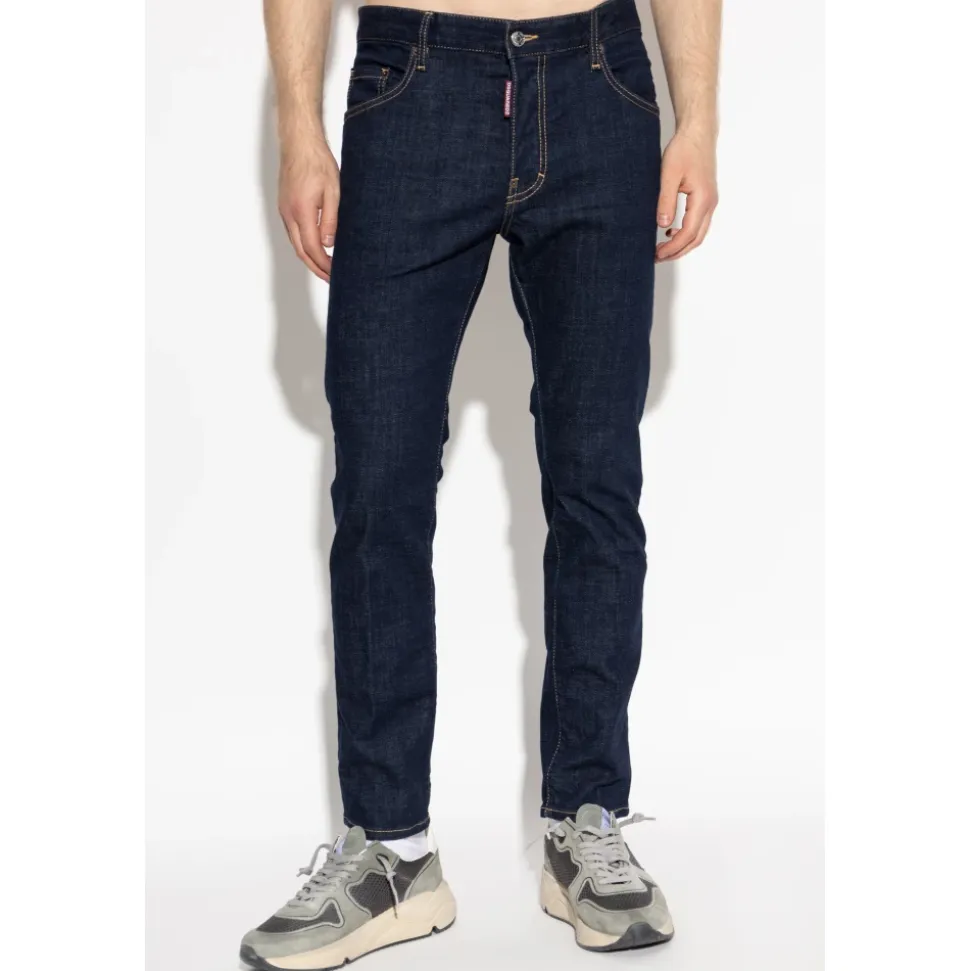 Jeansene ‘SKATER’ er et raffineret tilbud fra mærket DSQUARED2, som konsekvent kombinerer amerikansk glamour med italiensk chic. Gulerodssnit tilføjer elegance og fremhæver silhuetten, og tilbyder subtilt smalere ben i en moderne stil. Lavet af luksuriøs denim med stræk, tiltrækker dens glatte, marineblå overflade opmærksomhed med et enestående, diskret mønster. Synlige kontrastsømme, nitter ved lommerne og et lædermærke i taljen fuldender dette kunstneriske stykke, hvilket gør det til et uundværligt element i en elegant garderobe. Metalnitter og en mulig lille designerlogomærkat ved linningen former en harmonisk helhed og fremhæver det mærkeprægede stil på disse jeans. Klassiske lommer og en knap- og lynlåslukning tilføjer komfort og funktionalitet. HVORFOR SKAL DU KØBE DETTE PRODUKT? * Unik kombination af stilarter fra visionære designere. * Luksuriøs denim med stræk sikrer komfort. * Subtilt designede detaljer, der indikerer høj kvalitet. * Universal marineblå farve, ideel til forskellige lejligheder. Modellens målinger Højde: 193 cm Bryst: 95 cm Talje: 82 cm Hofter: 93 cm Modellen har størrelse: 50