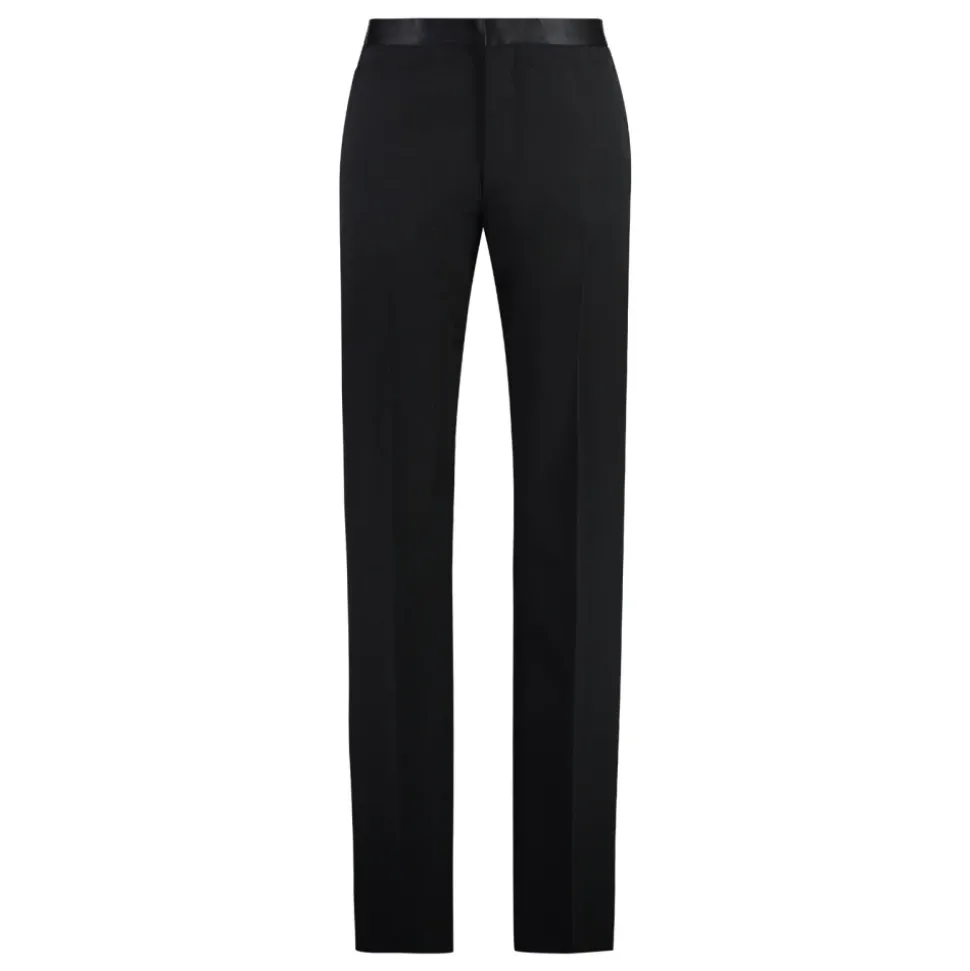 Givenchy Skræddersyede uldbukser kombinerer førsteklasses uldkonstruktion med en satinlinning for et raffineret formelt look. Den lige silhuet giver en skarp profil, der passer til formelle lejligheder og skræddersyet beklædning. Vigtige egenskaber: Sort | Uld | To sidelommer | To baglommer | Lige silhuet | Satinlinning | Mål og pasform: Klassisk pasform | Lige ben | Sammensætning og pleje: 100 % ren ny uld | Linning: 70 % silke, 30 % polyester | Skal renses. Må ikke vaskes. Må ikke tørretumbles. Må ikke bleges. Stryges ved maksimal temperatur på strygesålen (110°C) uden damp.