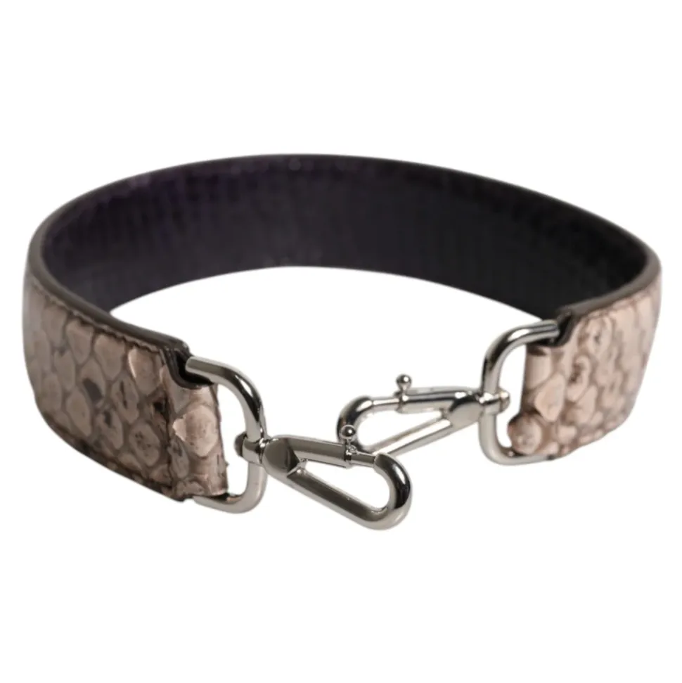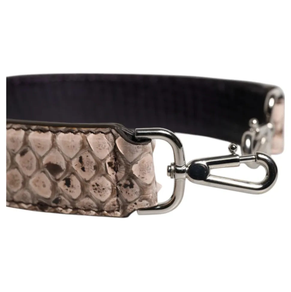 Dolce & Gabbana Skulderrem er et håndtaske-tilbehør i pytonlæder med sølvfarvede metaldetaljer og logo-accenter. Den er designet til at opgradere kompatible tasker med en karakteristisk sort og cremefarvet farvekombination. Vigtige egenskaber: Sort | Creme | Multifarvet | Pytonlæder | Logo detalje | Sølvfarvede metaldetaljer | Pytonlæder finish | Sort og cremefarvet farvekombination | Mål & pasform: 45 cm x 3 cm | Sammensætning & pleje: 100% Pytonlæder