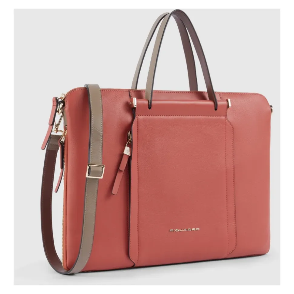 Piquadro Slank Laptop Taske 15,6″ er en udvidelig læder dokumentmappe designet til at beskytte og organisere en 15,6″ laptop. Den kombinerer en slank silhuet med stødabsorberende og RFID-beskyttelse til daglig pendling og forretningsrejser. Nøgleattributter: Pink | Arancio | Marrone | Læder | Stødabsorberende | RFID-beskyttelse | Stødabsorberende laptoprum | RFID-beskyttelse | Aftagelig skulderrem | Syet håndtag | Ekspansionssystem | Slank silhuet | Udvidelig profil | iPad-rum (fast) | Kontrasterende håndfarvede kanter | Dimensioner og pasform: 42,0 x 30,0 x 3,0 / 10,0 (cm) | Slank profil | Sammensætning og pleje: Læder | Foring: 100% Polyester | Rengør læder med et neutralt voksbaseret produkt, der påføres forsigtigt med en blød klud. Må ikke nedsænkes i vand; hvis den er våd, duppes den tør og undgå direkte varme. Til stofdele bruges en fugtig svamp med mild sæbe, skylles og lufttørres væk fra varme. Må ikke stryges eller renses.