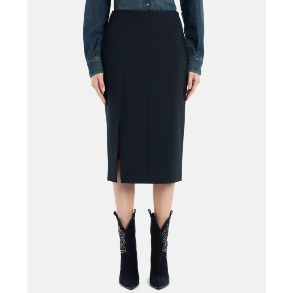Forkæl dig selv med denne slim fit midi nederdel fra Dondup, lavet af strækbart uldstof med en slid foran.