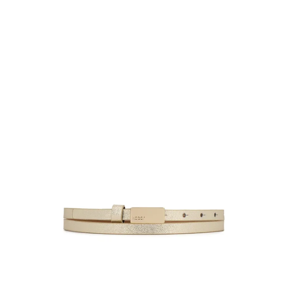 Kazar Smal Læderbælte bringer en metallisk guldglans og en slank profil, der løfter kjoler, nederdele og højtaljede bukser med en juvelagtig spændedetalje. Nøgleattributter: Gul | Guld | Læder | Multi-trins justering | Fem-huls størrelsesjustering | Kan afkortes ved spændet for tilpasset længde | Blødt materiale for behagelig brug | Metallisk guldglans | Fuld rektangulær guld-tone spænde | Glat-finish kanter | Slank profil, der fremhæver taljen | Juvelagtig spændedetalje | Dimensioner & pasform: Smal | Justerbar længde | Sammensætning & pleje: Læder