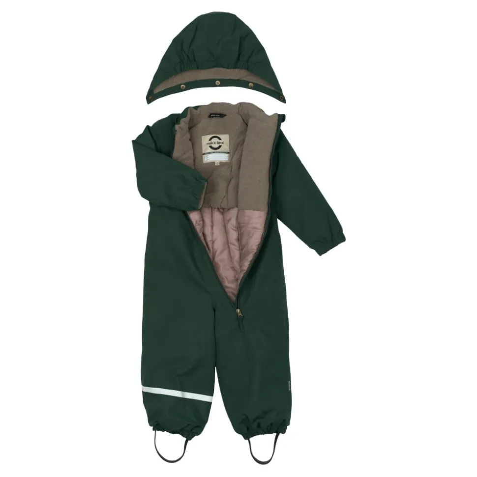 Mikk-Line Snow Suit Solid er en praktisk, alt-i-en vinterdragt designet til aktiv udendørs brug. Den kombinerer stærk vandtæthed med åndbar ydeevne for at holde brugeren varm og tør i våde, kolde forhold. Nøgleattributter: Grøn | Mørkeste Gran | Polyester | Vandtæt (20.000 mm vandsøjletryk) | Åndbar (5.000 g/m²/24h) | Tapede sømme for ekstra vandtæthed | Slidstærkt stof (slidstyrke ~55.000 gnidninger) | OEKO-TEX® Standard 100 certificeret | Aftagelig hætte med trykknapper | Elastiske fodstropper til at holde buksebenene på plads | Elastiske manchetter på ærmer og bukseben | Navneskilt med plads til flere navne | YKK lynlås med trækflig og hagebeskytter | Solidt design i ét stykke | Aftagelig hætte | Fuld lynlås foran med hagebeskytter | Sammensætning & pleje: Yderstof: 100% Polyester | Foring: 100% Polyester | Vattering: 100% Polyester | Maskinvask 30°C mild vask med lignende farver; brug blegemiddelfrit vaskemiddel; kort centrifugering; må ikke tørretumbles; må ikke stryges; må ikke renses.