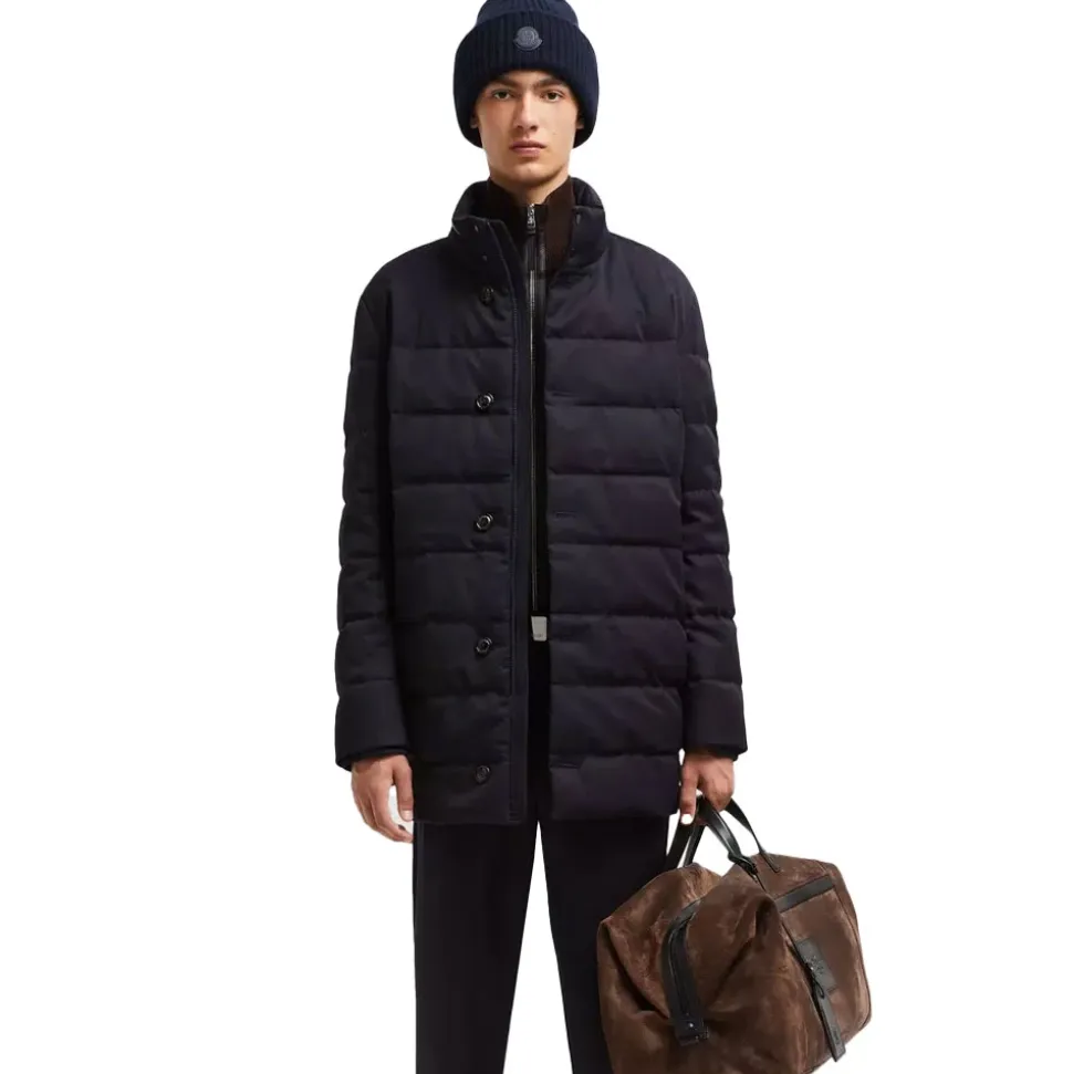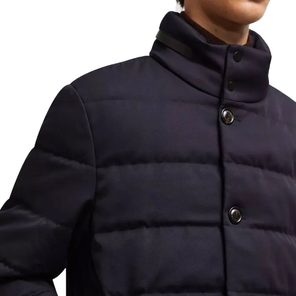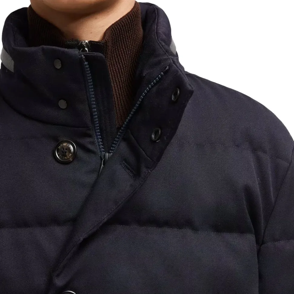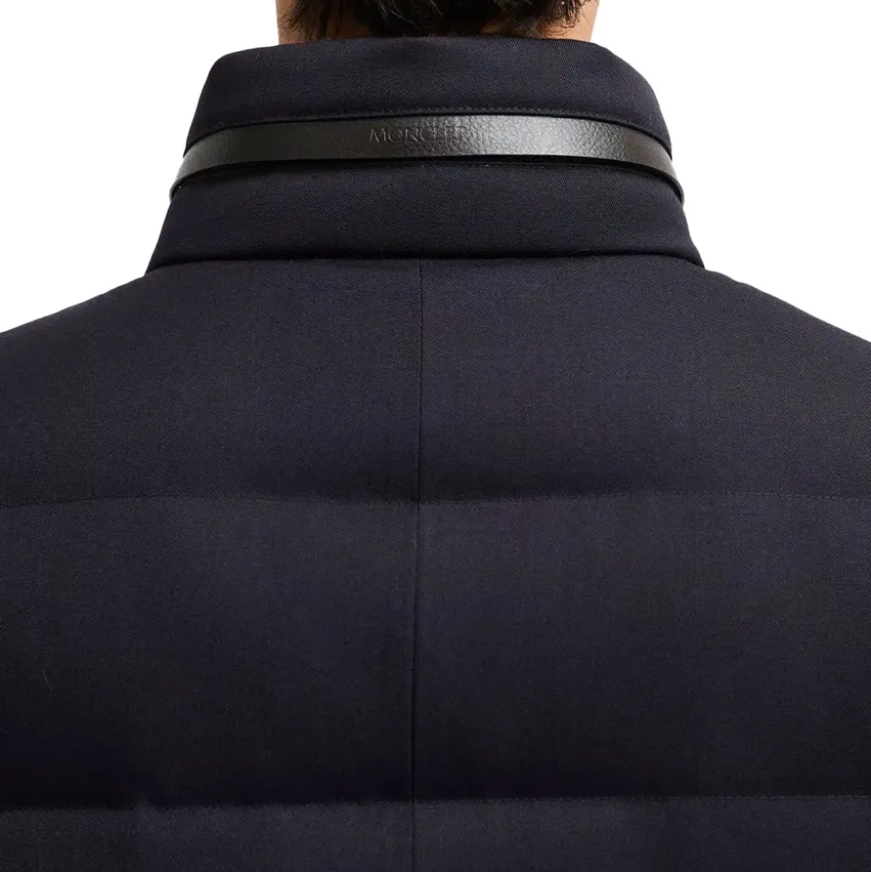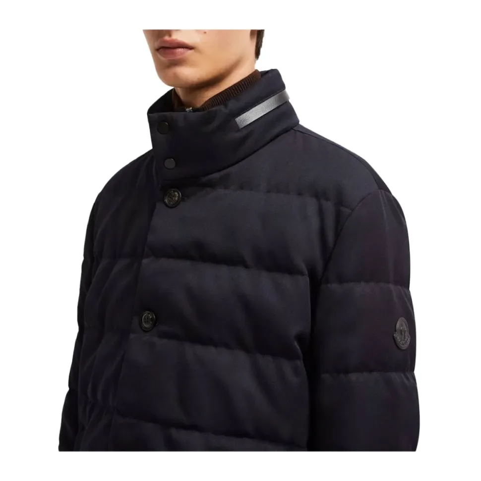 Opgrader din vinterstil med denne sofistikerede dunjakke fra Moncler. Fremstillet i uld, den har en skjult hætte og et elegant design, der er perfekt til enhver lejlighed. Produkt detaljer: Navy | Blå | Uld | Skjult hætte | Lynlås- og knaplukning | Trykknaplommer | Indvendig lynlåslomme | Læderlogo patch | Dimensioner og pasform: Modellen er 189 cm høj og bærer en størrelse 3. |